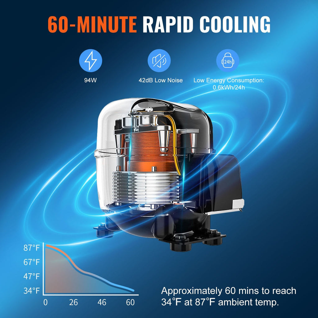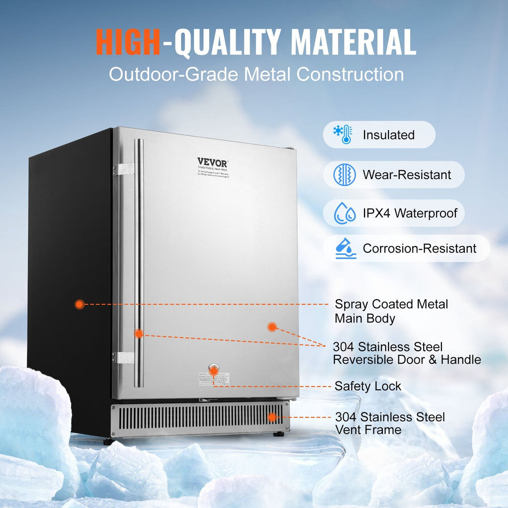 Keep your drinks perfectly chilled with the VEVOR 24-Inch Indoor/Outdoor Beverage Refrigerator. With a generous 185-quart capacity that holds up to 175 cans, this undercounter or freestanding fridge is ideal for residential kitchens, home bars, patios, or commercial spaces. Built with a durable metal plate body and a sleek 304 stainless steel door and vent, it offers superior cooling from 34ºF to 65ºF, ultra-quiet operation, and reversible door flexibility. Whether for indoor entertaining or outdoor relaxation, this beverage fridge is your all-season cooling solution.