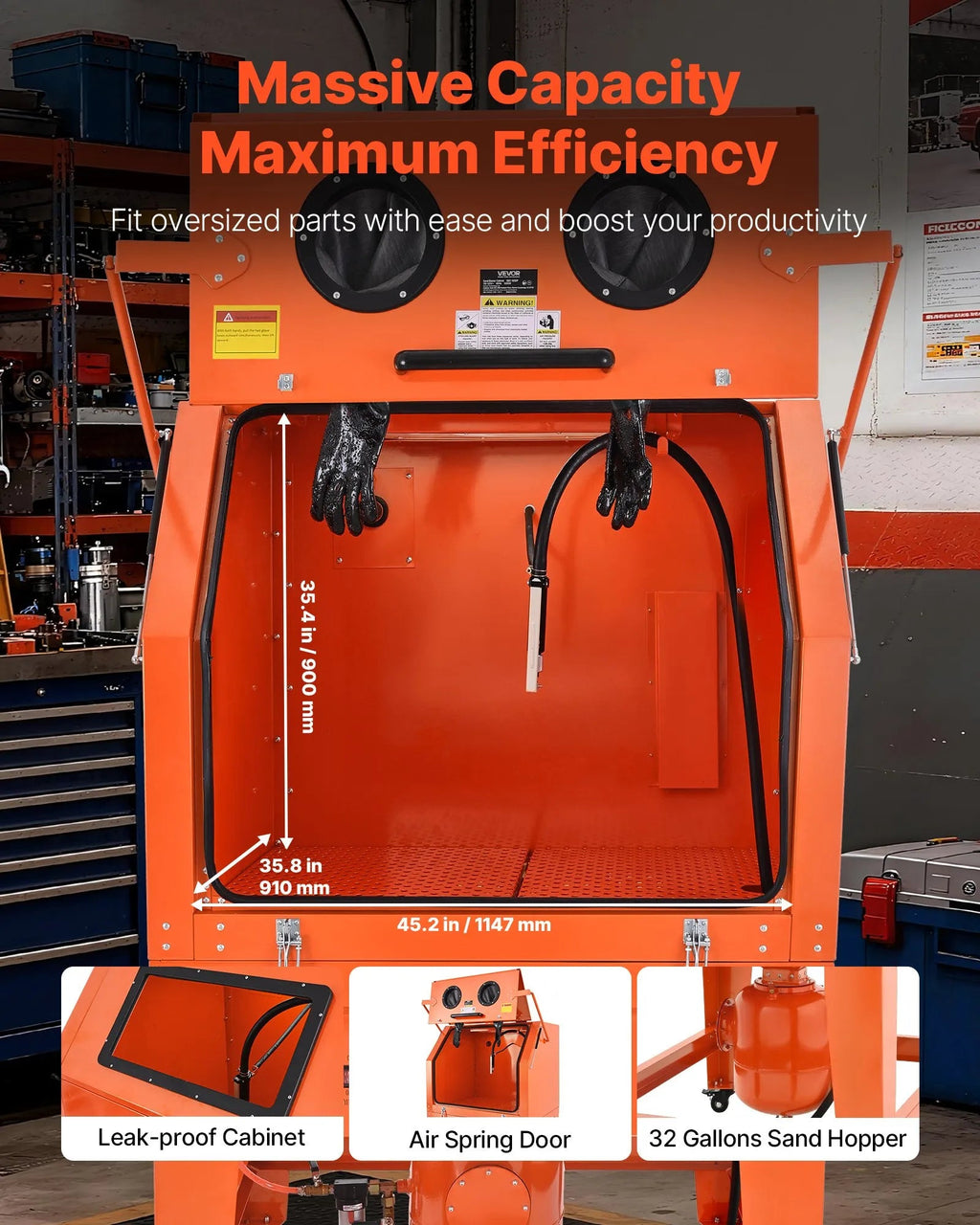 Massive 245-Gallon Capacity: Featuring an extra-large 45.2" × 35.8" × 35.4" workspace, it accommodates oversized parts with ease. Built with heavy-duty cold-rolled steel to withstand daily shop use and demanding workloads.