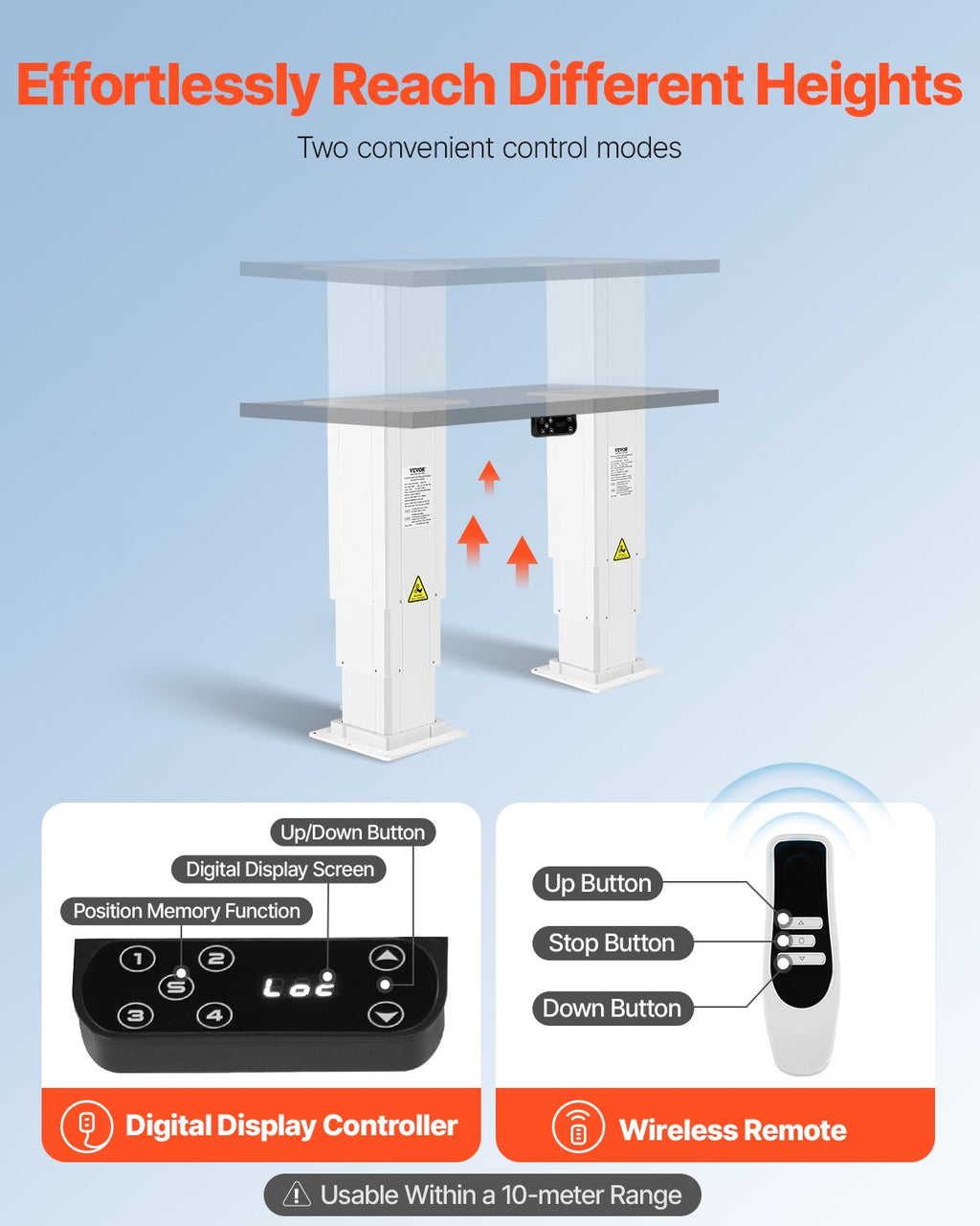 Upgrade your workstation or equipment setup with the VEVOR Adjustable Electric Lifting Column System. Featuring a dual-column structure with a robust 260 lbs load capacity, this system delivers smooth, quiet, and stable height adjustments from 14.2 to 31.1 inches. With a sleek silver finish and a smooth metal surface, it offers both performance and style. Designed for easy installation and wide compatibility, it includes multiple mounting holes and two remote control batteries for immediate operation. Ideal for desks, industrial equipment, or lifting platforms, this lifting column system offers secure and versatile use for any setting.