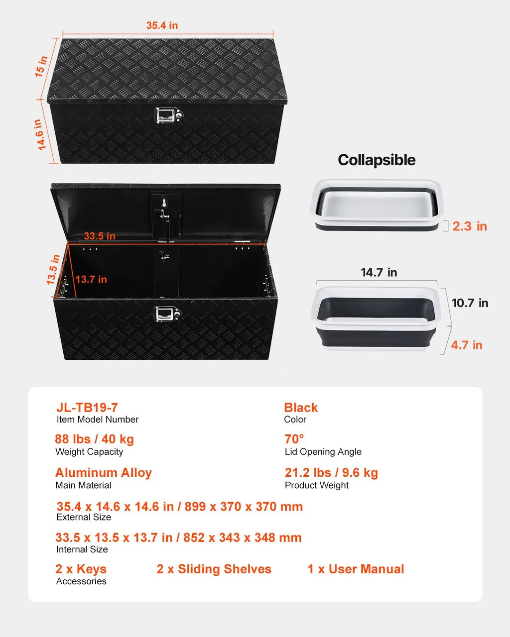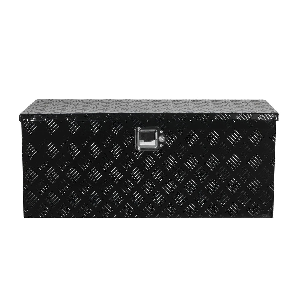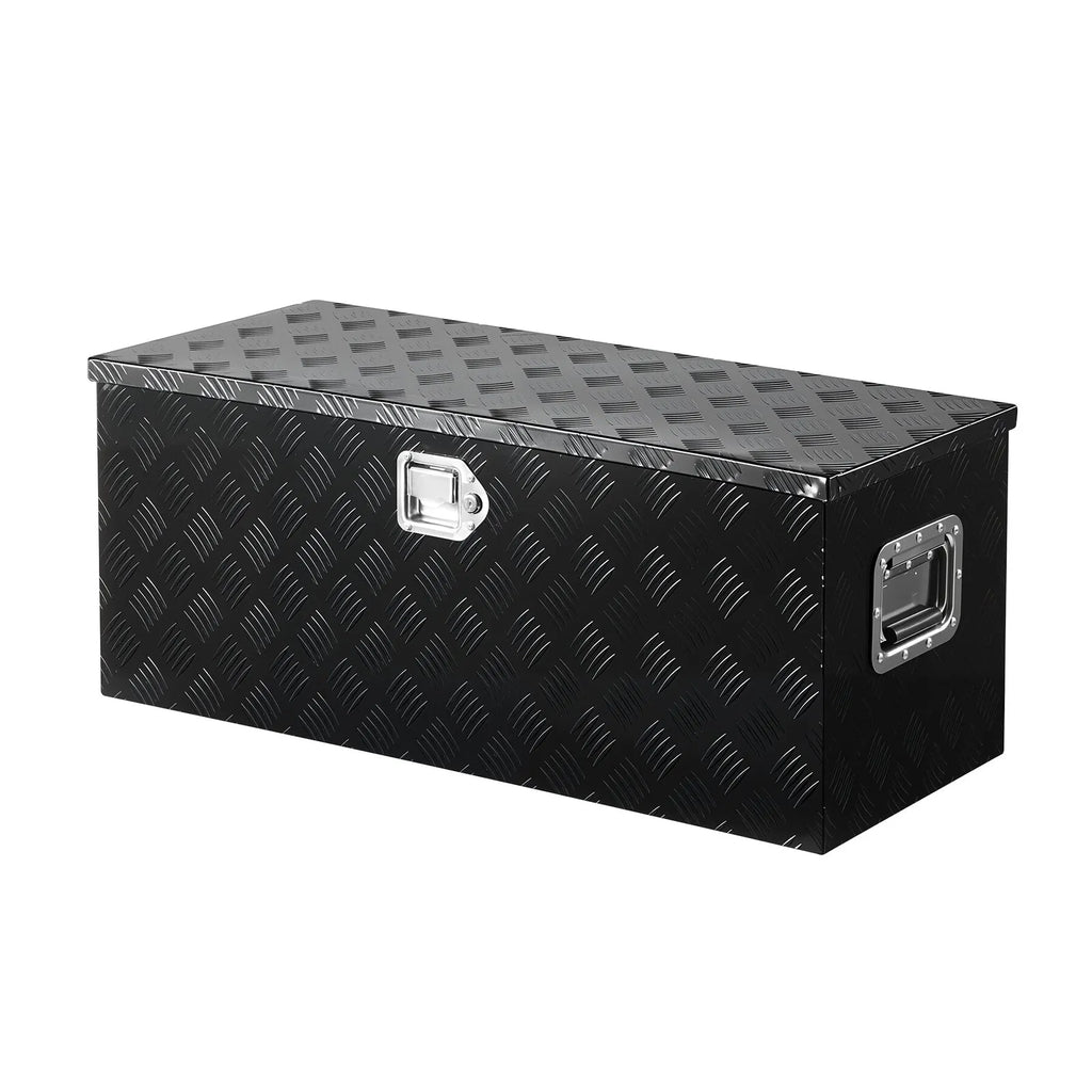 The VEVOR 35.4"x14.6"x14.6" Heavy Duty Aluminum Truck Bed Tool Box is a robust storage solution for pickup trucks and RVs. Built from durable aluminum alloy with a scratch-resistant exterior, it ensures secure storage while providing easy access with a gas strut-assisted lid and a sturdy pickproof lock.
