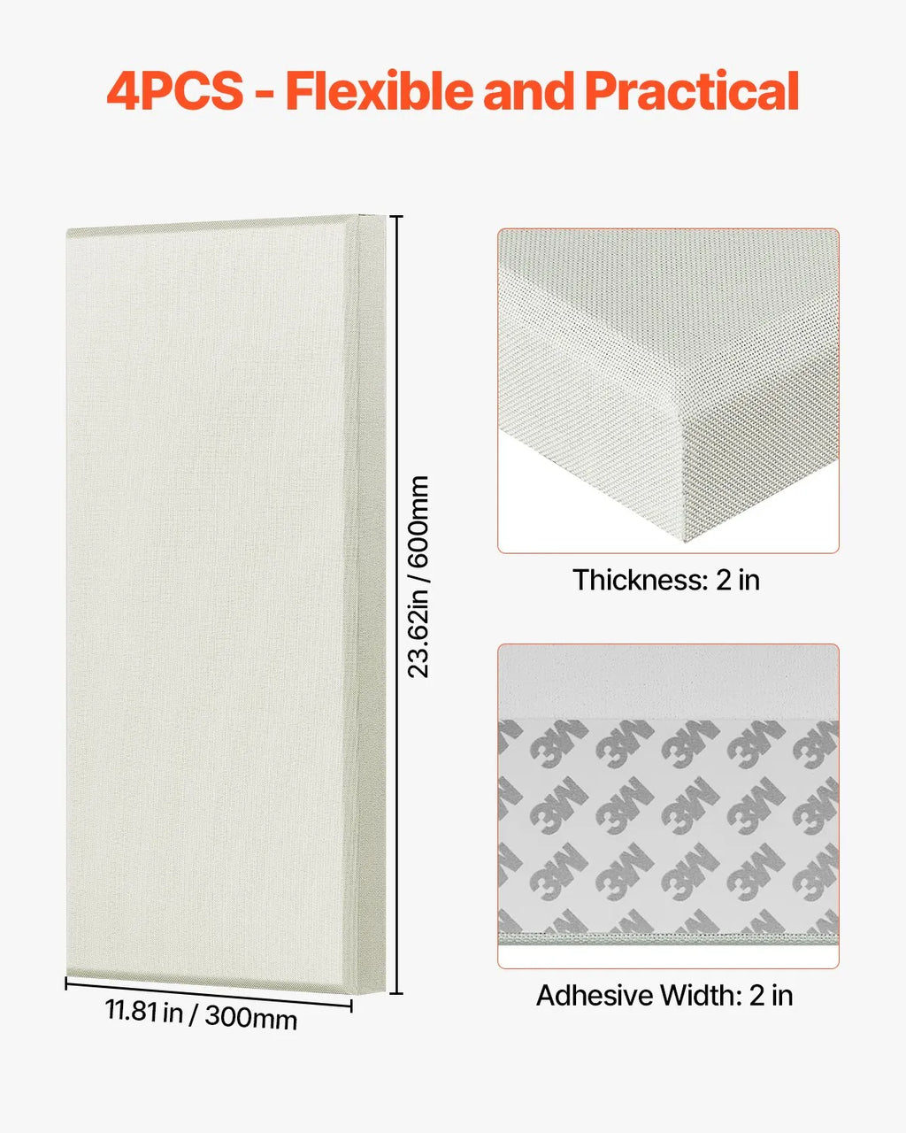 The VEVOR Acoustic Wall Panels are designed to improve sound quality by reducing noise, echo, and reverberation in your space. This 4-piece set features thick 2-inch sound-absorbing panels made from 100% white fiberglass liner with a high NRC rating of 0.95 for excellent acoustic performance. The self-adhesive 3M backing allows quick and easy installation without additional tools. With a clean beige design, these panels combine functionality and aesthetics, making them ideal for home studios, offices, gaming rooms, and entertainment spaces.