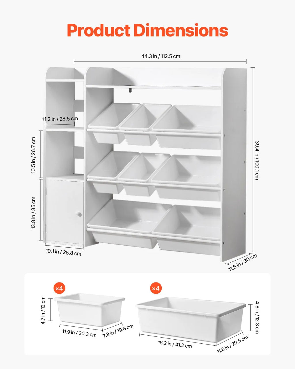 Storage Cabinet Dimensions: 13.8 x 10.1 x 10.7 in / 35 x 25.8 x 27.3 cm