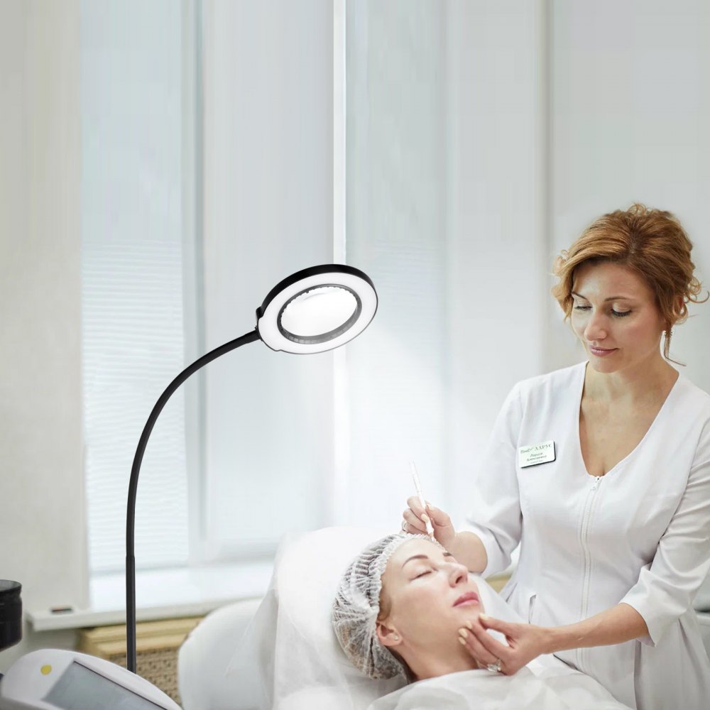 Experience precision and clarity with the VEVOR 5X Magnifying Floor Lamp, a versatile tool designed for hobbyists, crafters, estheticians, and professionals. Featuring a crystal-clear 4.3-inch glass lens, 64 built-in LED lights, and a 3-in-1 stand design, this magnifier lamp provides hands-free illumination with flexible positioning. Enjoy 5-color stepless dimming and touch control for perfect lighting in any environment.