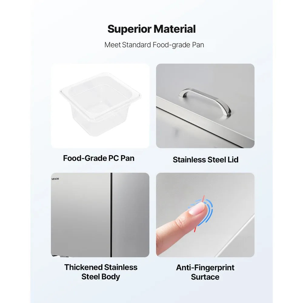 Durable Construction: Stainless steel body with food-grade PC pans ensures long-lasting use, easy cleaning, and safety for food storage.