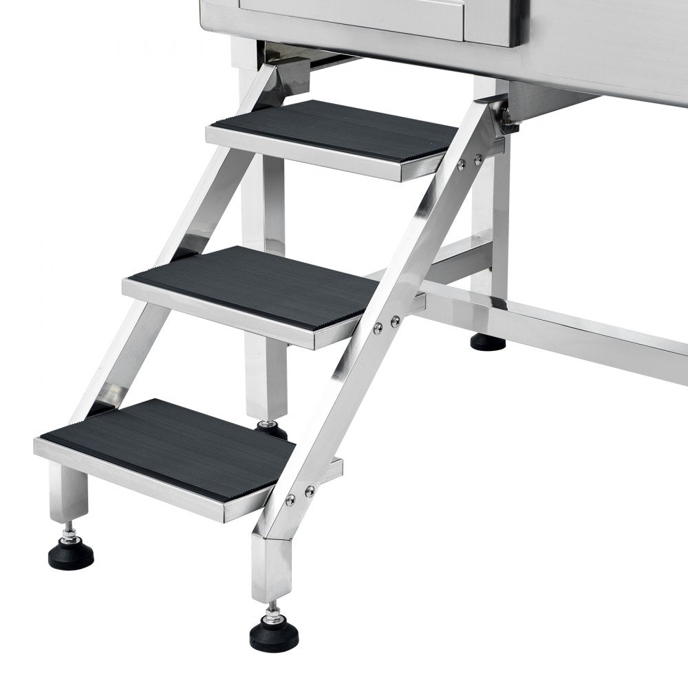 The VEVOR 62" Pet Dog Bathing Station is a professional-grade grooming tub designed for convenience, durability, and comfort—for both pets and owners. Crafted from high-quality stainless steel, it supports pets up to 440 lbs, making it ideal for large, medium, and small dogs alike. The built-in stairs provide easy access for pets, while the included soap box, faucet, and rich accessory kit enhance the grooming experience. Its ergonomic, right-side configuration allows for comfortable use without unnecessary bending, making bath time more efficient and less stressful.