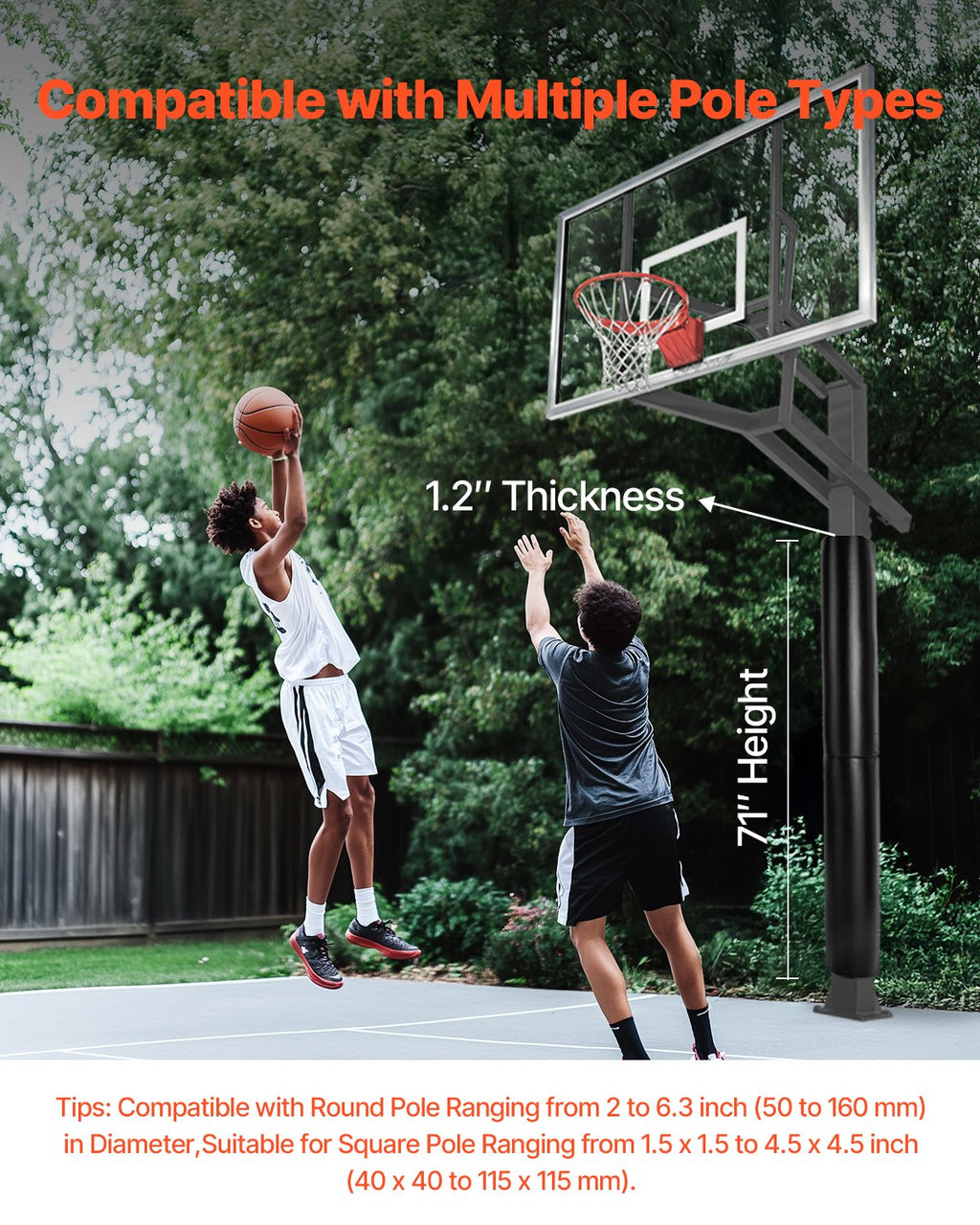 Quickly Choose the Right Size: Fits most standard basketball hoop poles, round or square.