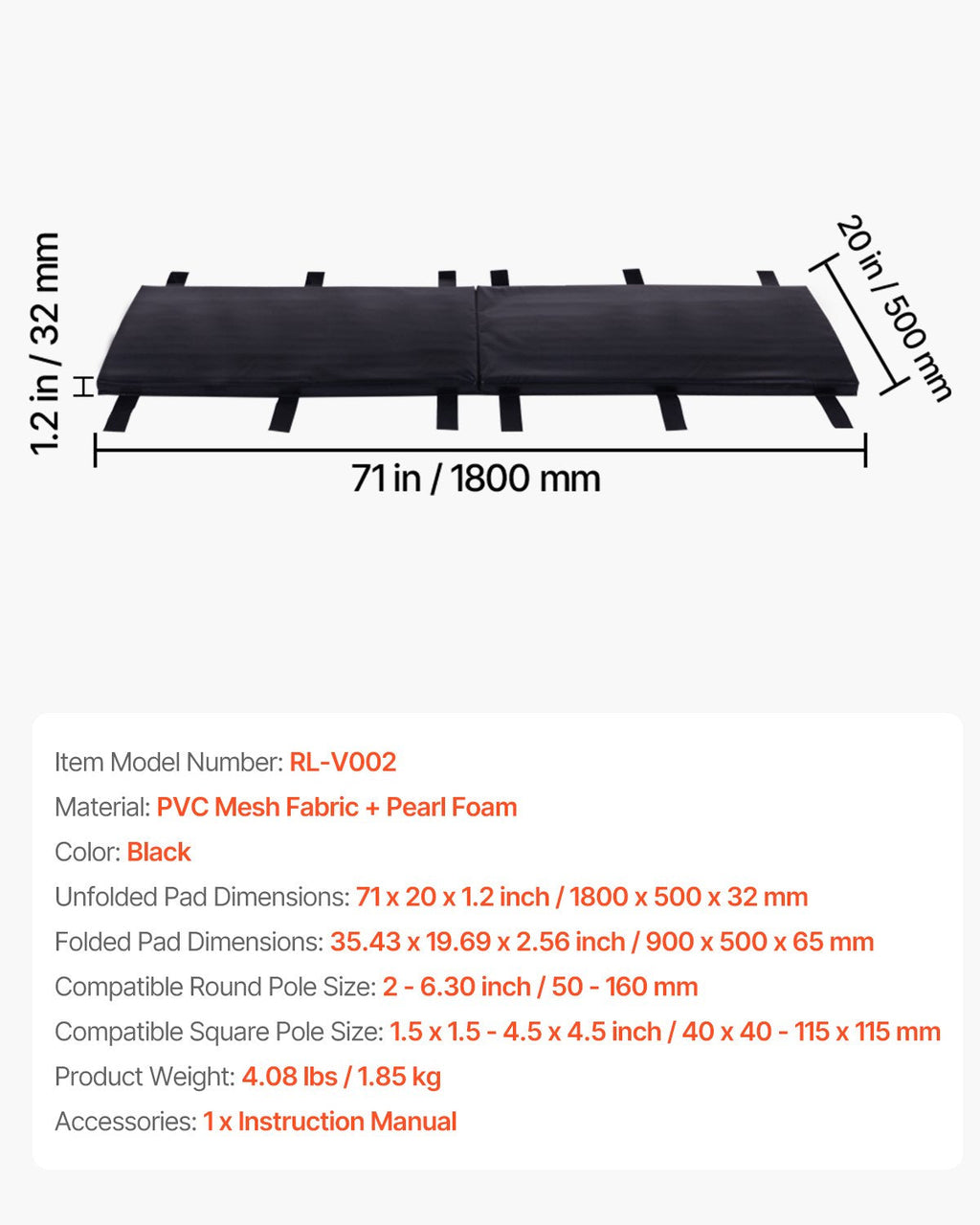 Protect players and enhance your court setup with the VEVOR 71" Basketball Pole Pad. This durable and stylish pad fits a wide range of pole sizes—from 2" to 6.3" round and up to 4.5" x 4.5" square—offering reliable coverage and shock absorption. Crafted with low-maintenance PVC mesh fabric and cushioned pearl foam, it guards against accidental collisions during intense games. Its foldable design makes it easy to install, remove, and store, ensuring safety without compromising on convenience or appearance.