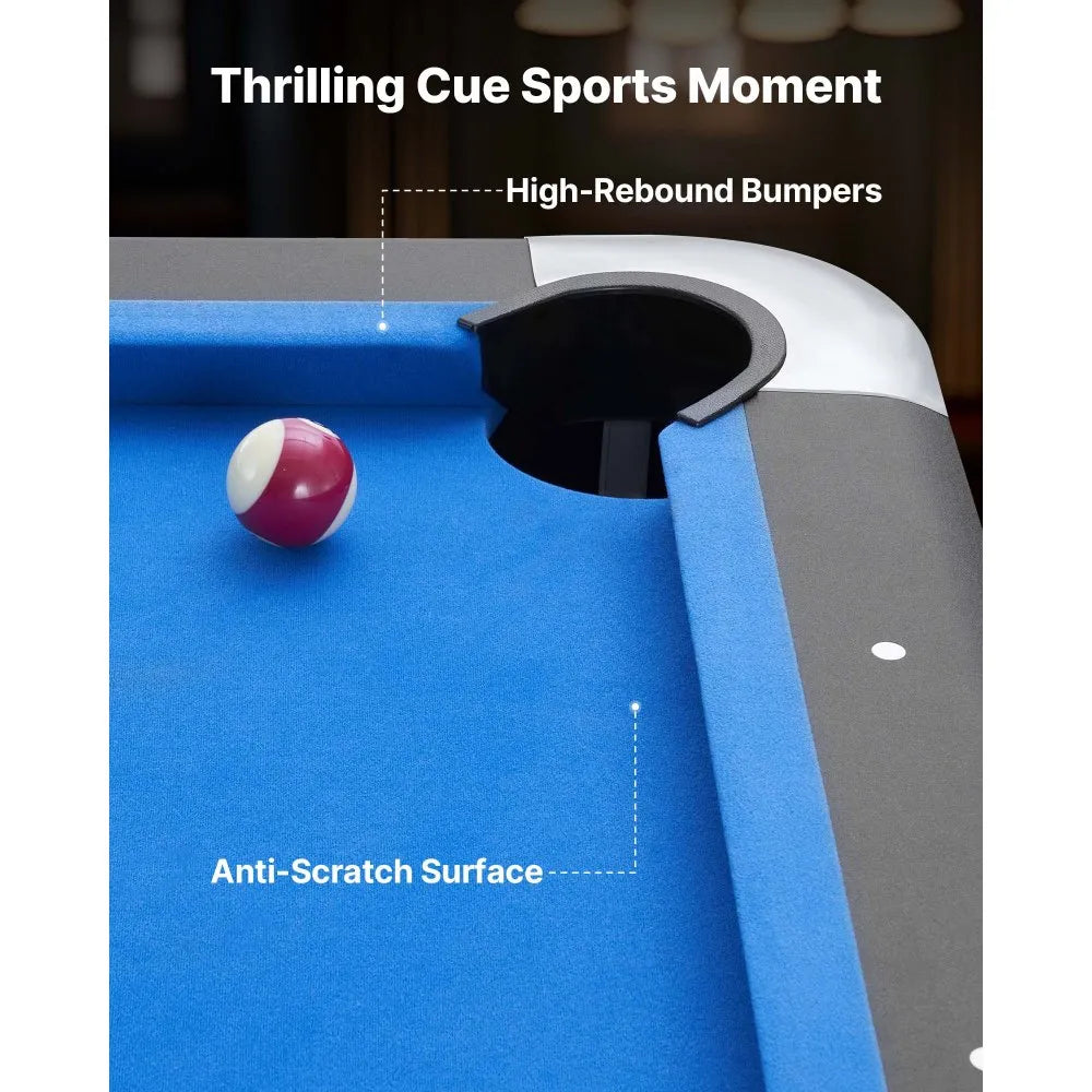 Bring family fun and competitive play to your home with the VEVOR 7 ft Portable Pool Table. Designed for family use, recreation rooms, and casual entertainment, this table features a premium felt surface, adjustable feet, and a complete billiards accessory kit including balls, cues, chalk, brush, and rack. Its sturdy MDF frame and reinforced details ensure long-lasting stability and performance.