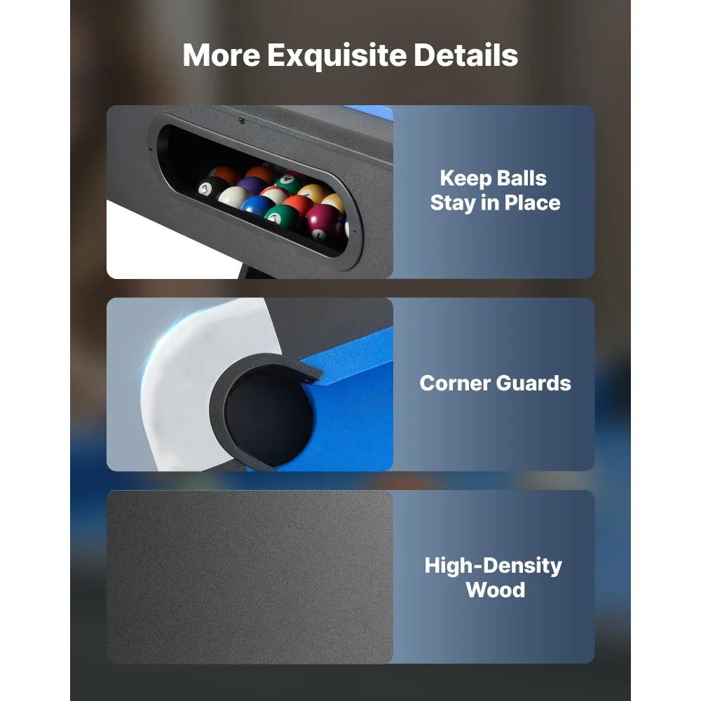 Exquisite Details: Reinforced nets securely hold balls, protective corners guard walls and table edges, and premium felt with cushion bumpers ensures smooth, precise gameplay.
