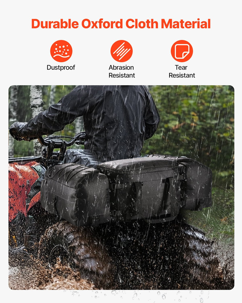 The VEVOR 74L ATV Rear Storage Bag offers extra-large storage capacity for your ATV, ensuring you can carry all your essential gear while riding. Made from high-quality 600D Oxford cloth, this durable rear cargo bag is built to withstand the elements and rugged conditions. Equipped with an elastic cord, carrying handle, and insulation bag, it’s ideal for outdoor adventures and long rides. With a spacious 74L capacity, this bag provides ample room for your gear, making it an essential companion for your ATV.