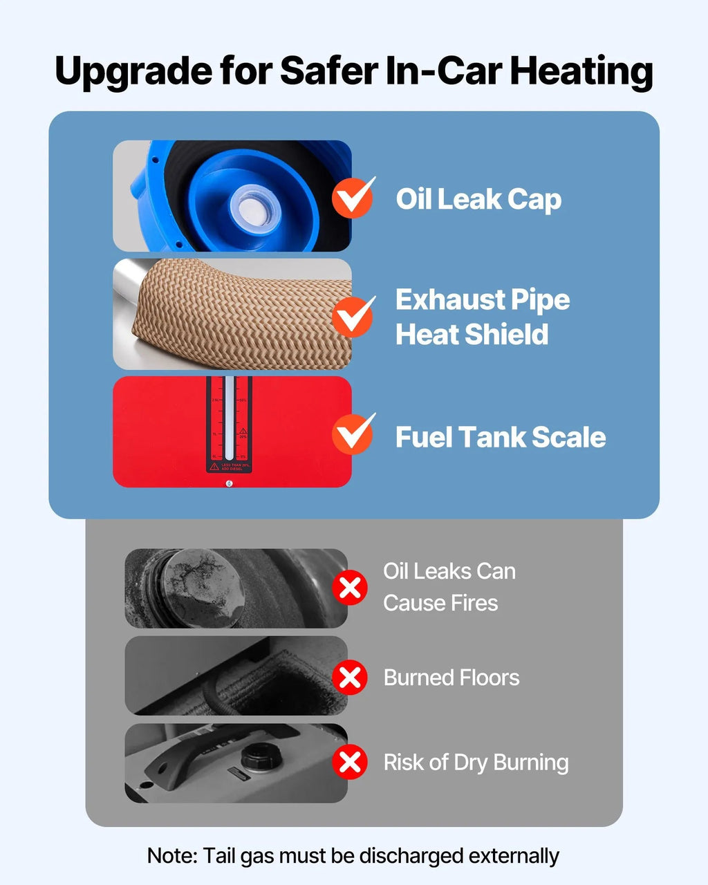 Equipped with a precision low-noise fuel pump and a 5L (1.3 gal) fuel tank, this heater ensures efficient combustion and long-lasting warmth while minimizing fuel consumption. Dual control options include a 98 ft remote for preheating from outside and a Black LCD screen for precise temperature adjustments between 32–104℉ / 0–40℃. Its compact and portable design allows for easy installation and reliable operation even at high altitudes.
