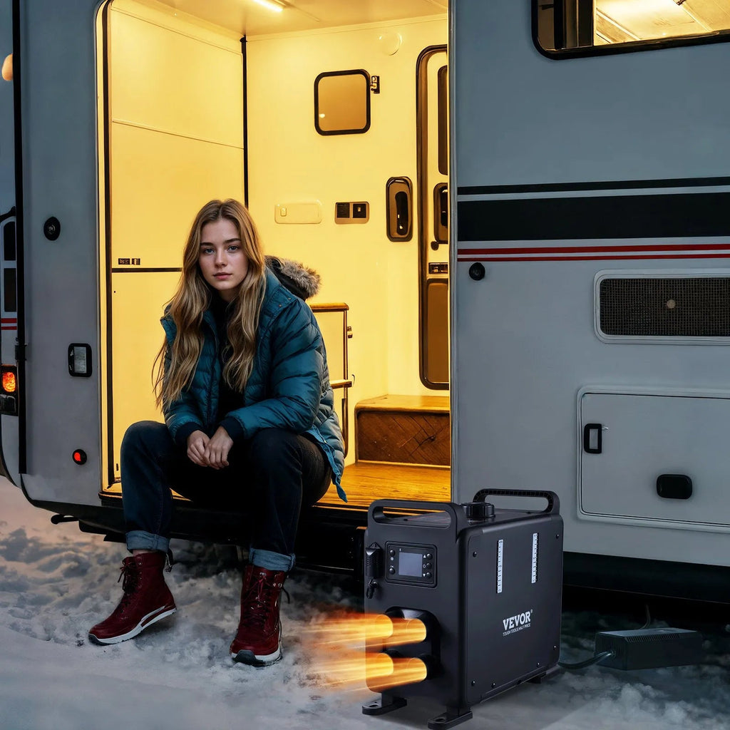 The VEVOR 8KW Diesel Heater is a high-performance all-in-one diesel air heater designed for DC 12-24V power sources. It features an innovative CO alarm system for safety, leak-proof fuel tank cap, fuel level indicator, and overheat protection for reliable use. Built with a cast aluminum body and ceramic igniter, it delivers rapid heating while consuming only 0.18-0.35L/h of diesel, making it fuel-efficient. Quiet operation at ≤75dB ensures comfortable use in vehicles, garages, RVs, or outdoor settings. The heater can be controlled via Bluetooth app, remote control, or display panel, providing convenient and precise temperature management wherever warmth is needed.