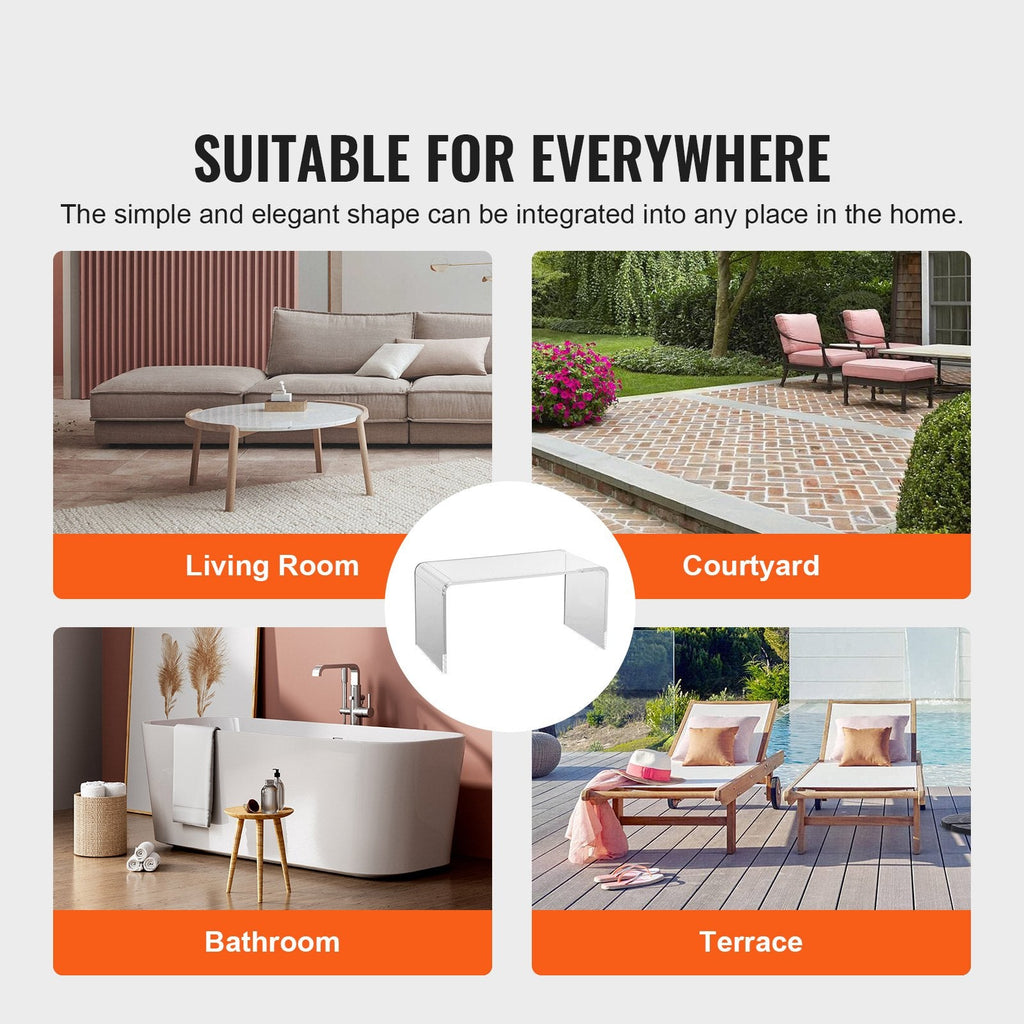 Add a touch of modern elegance to your living space with the VEVOR Acrylic Coffee Table. This transparent C-shaped side table is crafted from premium clear acrylic, combining style with durability. Its optimal height and sturdy construction make it perfect for holding your coffee, drinks, snacks, or decor in the living room, courtyard, or terrace. The smooth edges and easy-to-clean surface add convenience and safety to your home environment.