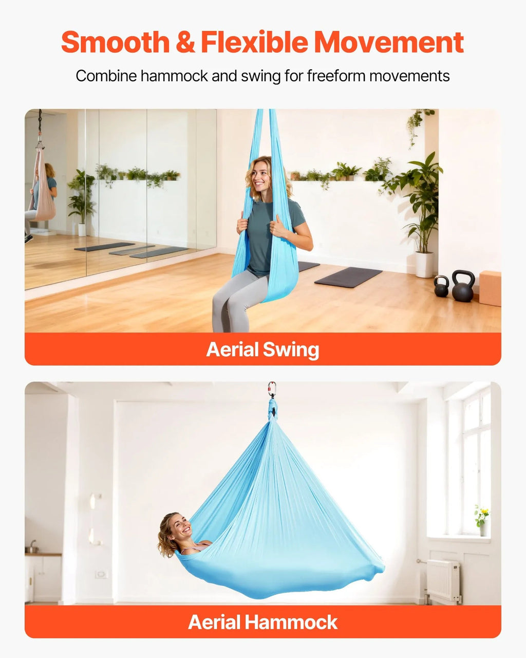 Experience ultimate relaxation and strength training with the VEVOR Aerial Yoga Hammock. Designed with durable, tear-resistant spandex fabric, this hammock provides a comfortable and secure space for yoga, stretching, and relaxation. Suitable for men, women, and children, its dual-function design allows for both hammock and swing modes, offering a versatile and fun aerial workout experience.