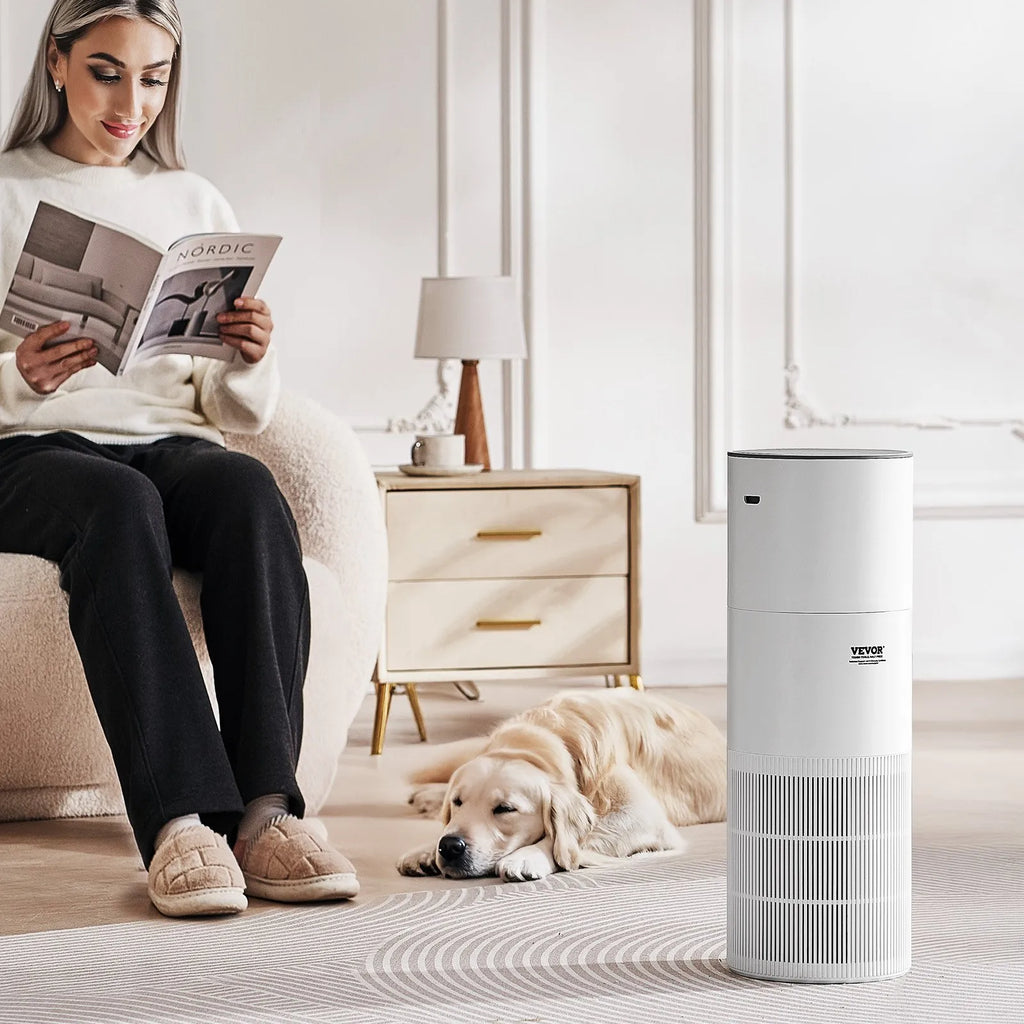 The VEVOR Air Purifier with True HEPA 11 Filter is designed for large rooms, providing clean and fresh air for allergy sufferers, pet owners, and anyone seeking a healthier indoor environment. Featuring multi-layer filtration—including pre-filter, HEPA H11, and activated carbon—this purifier removes dust, allergens, and odors efficiently. With a 1.9 L water tank, it also offers gentle humidification while operating quietly, making it ideal for bedrooms, offices, or living areas. Its compact design and user-friendly controls ensure hassle-free operation.
