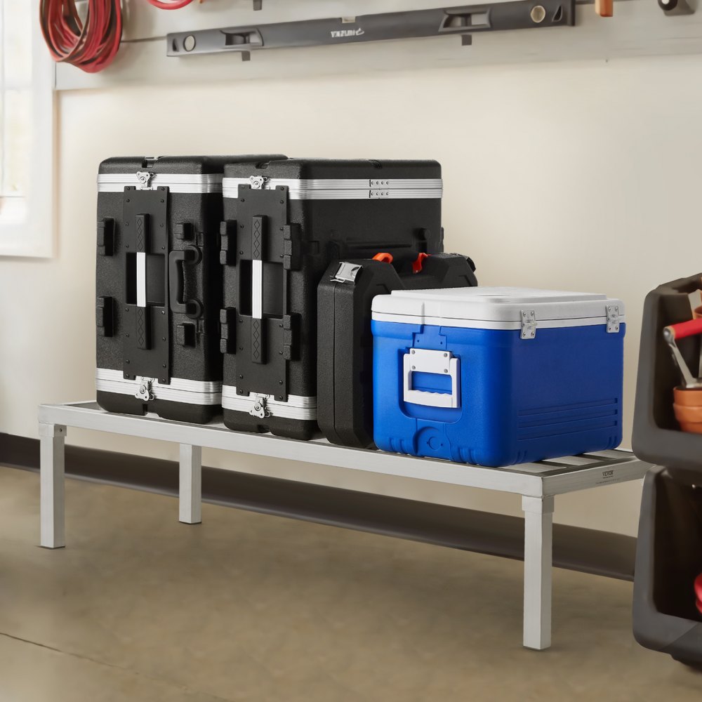 The VEVOR Aluminum Dunnage Rack offers durable and efficient storage for heavy-duty needs. Made from high-quality aluminum, this stationary rack provides impressive load capacity and ensures long-lasting use without worrying about corrosion or rust. Ideal for a variety of environments, it offers 48” x 20” x 12” of storage space with a maximum weight capacity of 1800 lbs. The rack requires no assembly and is easy to carry, providing versatility in its use.