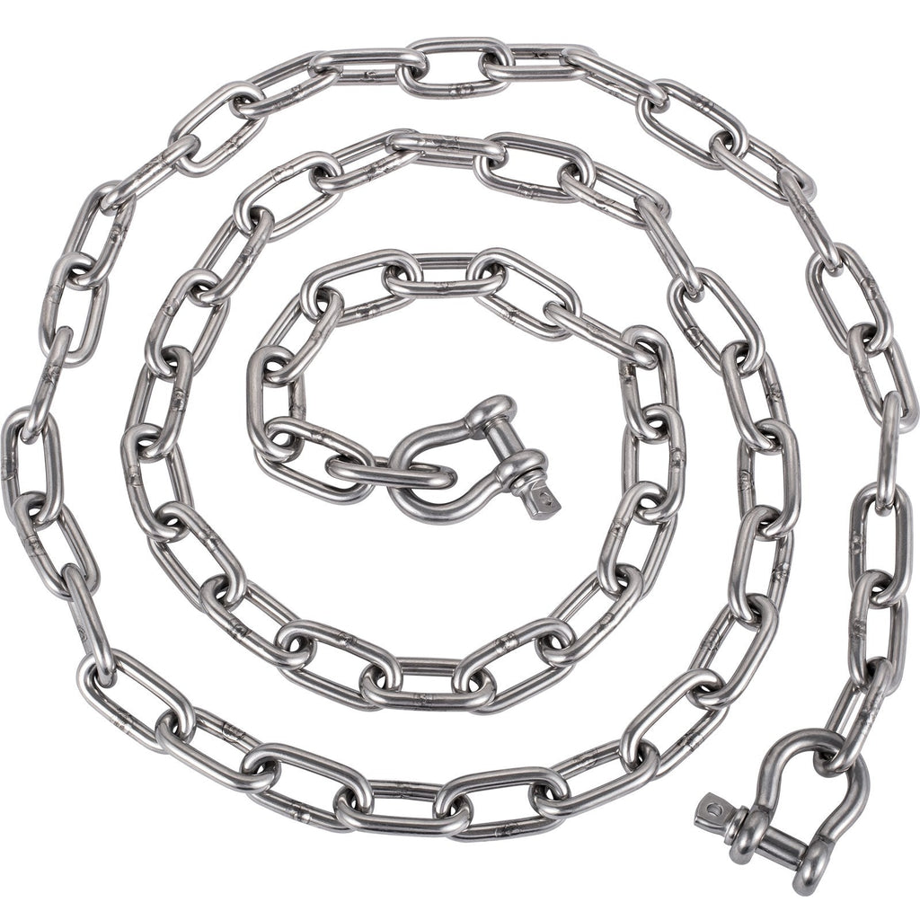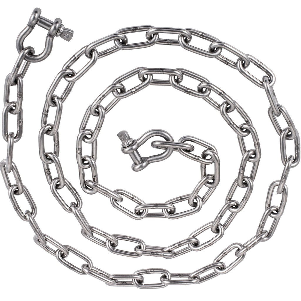 The VEVOR 10 ft x 5/16 in Stainless Steel Anchor Chain is a marine-grade, heavy-duty solution designed for secure anchoring in harsh ocean environments. With a high breaking load of 7120 lbs and paired with a 3/8" anchor chain shackle rated up to 9460 lbs, this anchor lead chain ensures maximum stability and strength. Built from corrosion-resistant stainless steel and featuring an advanced surface finish, it’s ideal for boats of all sizes needing reliable mooring gear that can stand up to the elements.