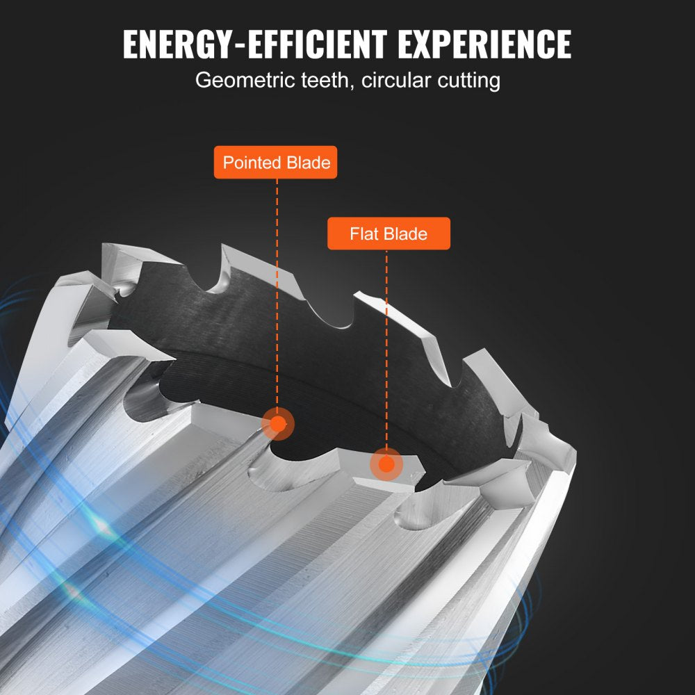 Tackle demanding drilling jobs with precision using the VEVOR 6-Piece Annular Cutter Set. Made from high-speed M2AL steel, these durable mag drill bits deliver efficient, burr-free holes with minimal effort. Designed for magnetic drill presses, this kit includes six cutters ranging from 1" to 2" diameter, plus two pilot pins—all neatly stored in a portable case.