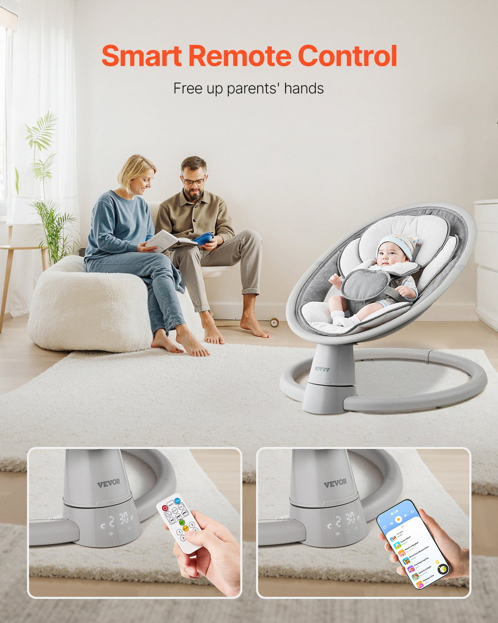 Your Smart Baby Soothing Helper: 5 adjustable speeds and Bluetooth capabilities with built-in lullabies for ultimate baby comfort.