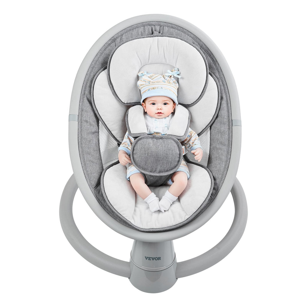 The VEVOR Baby Swing for Infants is the perfect companion for soothing your little one with ease. Designed with smart technology, it offers 5 adjustable speeds, Bluetooth functionality, and built-in lullabies to keep your baby calm and entertained. With the included remote control, you can adjust settings without disturbing your baby. The cushioned seat provides a comfortable and secure place for your baby to relax. This swing is also portable and travel-friendly, making it a versatile option for parents on the go. With a built-in smart timer, this swing ensures hassle-free naps, letting your baby enjoy peaceful rest.