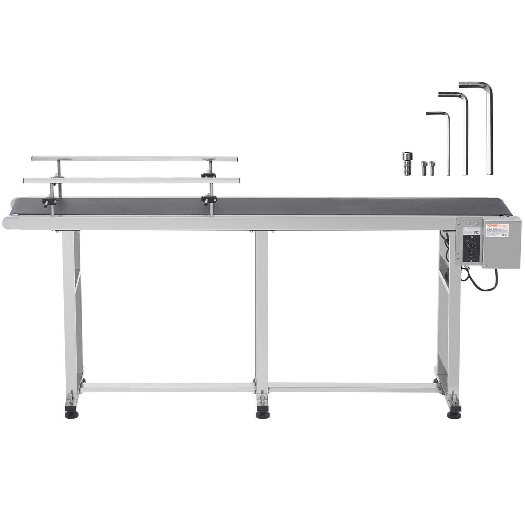 The VEVOR Belt Conveyor is designed for heavy-duty industrial applications, providing reliable performance in inkjet coding and other assembly line tasks. Featuring a 71 x 7.8-inch PVC conveyor belt, this motorized conveyor is built from high-quality stainless steel, ensuring durability and stability. With adjustable speed settings, double guardrails for safety, and overheat and current protection, it is a versatile and reliable addition to any production line. This conveyor system can handle up to 93.70 lbs/42.5 kg of load, making it perfect for both light and medium-duty tasks. Whether for inkjet coding, packaging, or sorting, the VEVOR Belt Conveyor offers the flexibility you need to streamline operations.