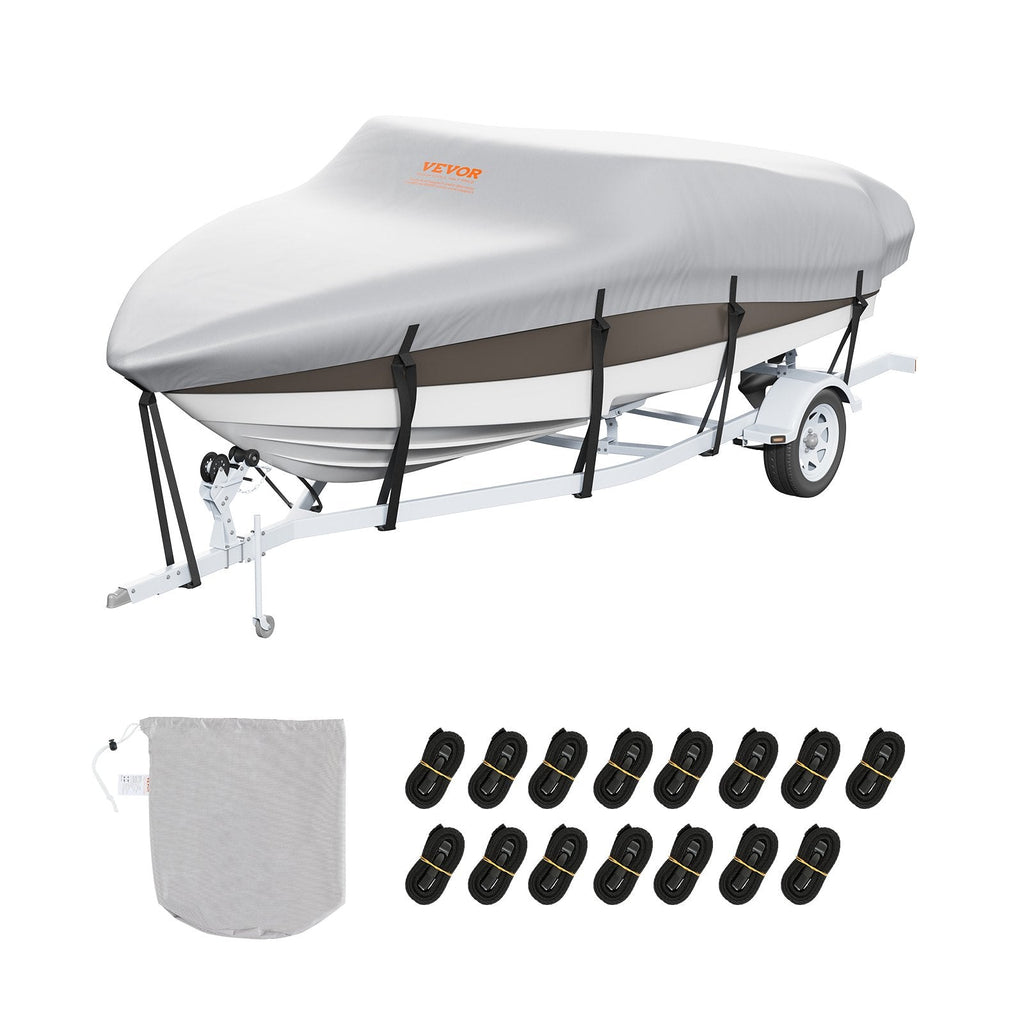 The VEVOR Boat Cover is designed for boats ranging from 20 to 22 feet, offering full protection from weather, dirt, and debris. Made from durable 600D marine-grade PU Oxford fabric, this trailerable waterproof cover features a motor cover and secure buckle straps for easy fastening. Ideal for V-hull, tri-hull, fish ski boats, runabouts, and bass boats, it ensures your boat remains clean and protected during storage and transportation.