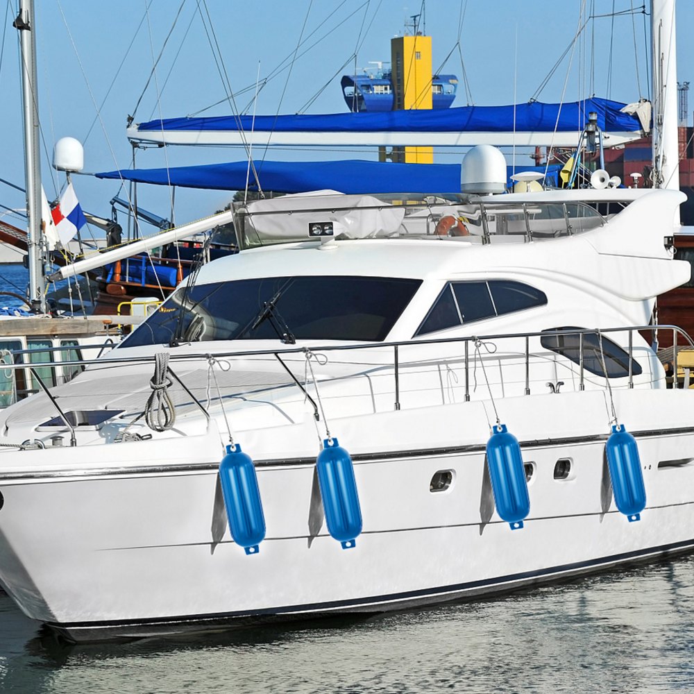 The VEVOR Boat Fender pack offers durable and reliable protection for your vessel. Each fender measures 8.5 x 27 inches and features a ribbed design for enhanced cushioning. With twin eyes for secure attachment and a vibrant blue finish, these fenders not only safeguard your boat from collisions and dockside wear but also add a stylish touch. The included pump ensures quick and easy inflation, making this set ideal for any boating enthusiast.