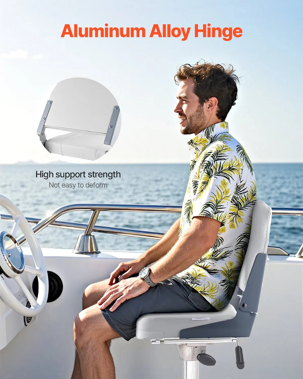 Experience lasting comfort on the water with the VEVOR Folding Boat Seat. Designed with a low backrest, thick cushioning, and waterproof PVC leather, this flip-up fishing boat seat delivers reliable support, durability, and space-saving convenience for marine use.