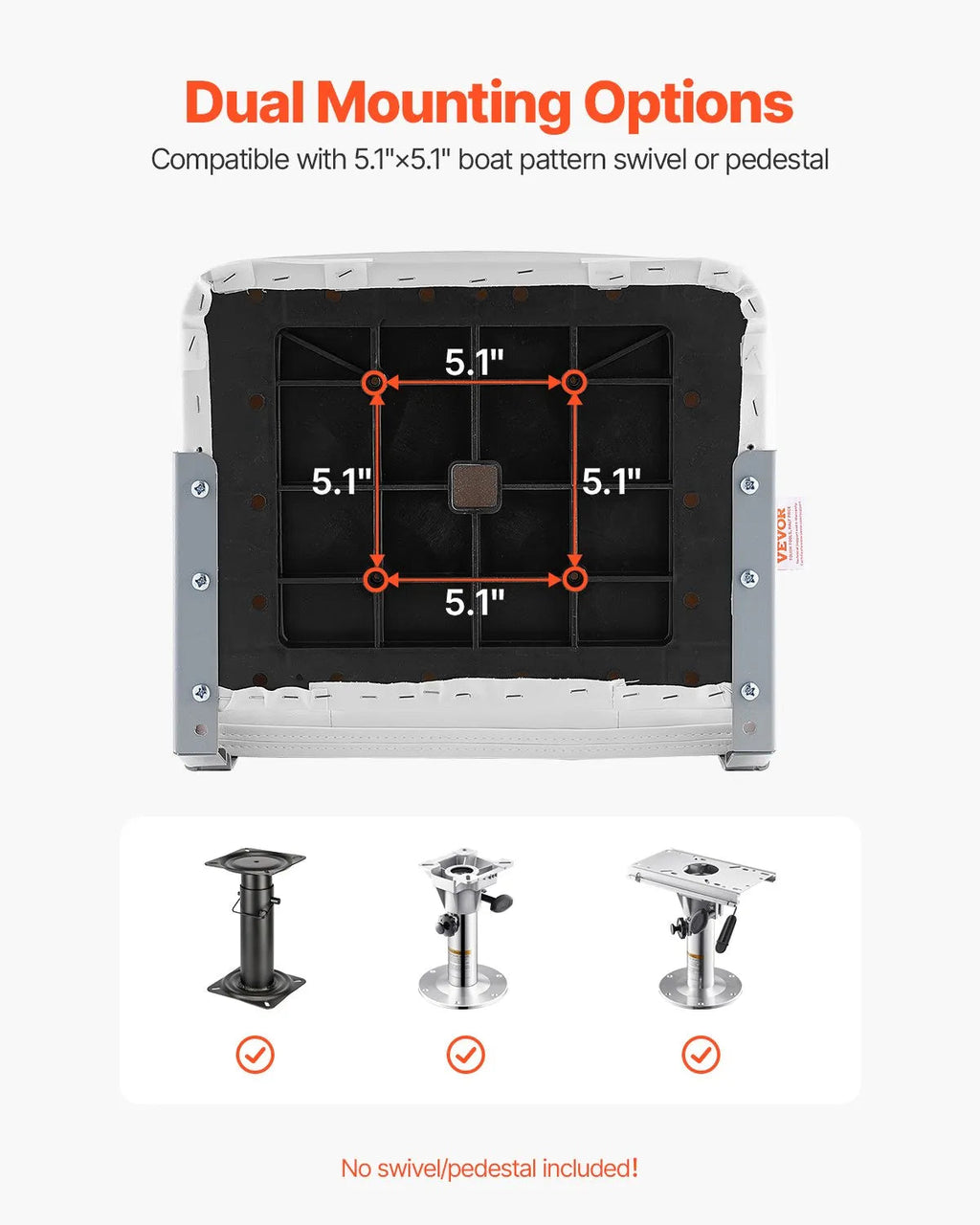 Standard 5.1" Bolt Hole Installation: Features 5.1" x 5.1" bolt hole spacing for easy mounting on most standard boat swivels or bases. Corrosion-resistant screws and washers included (base and swivel not included).