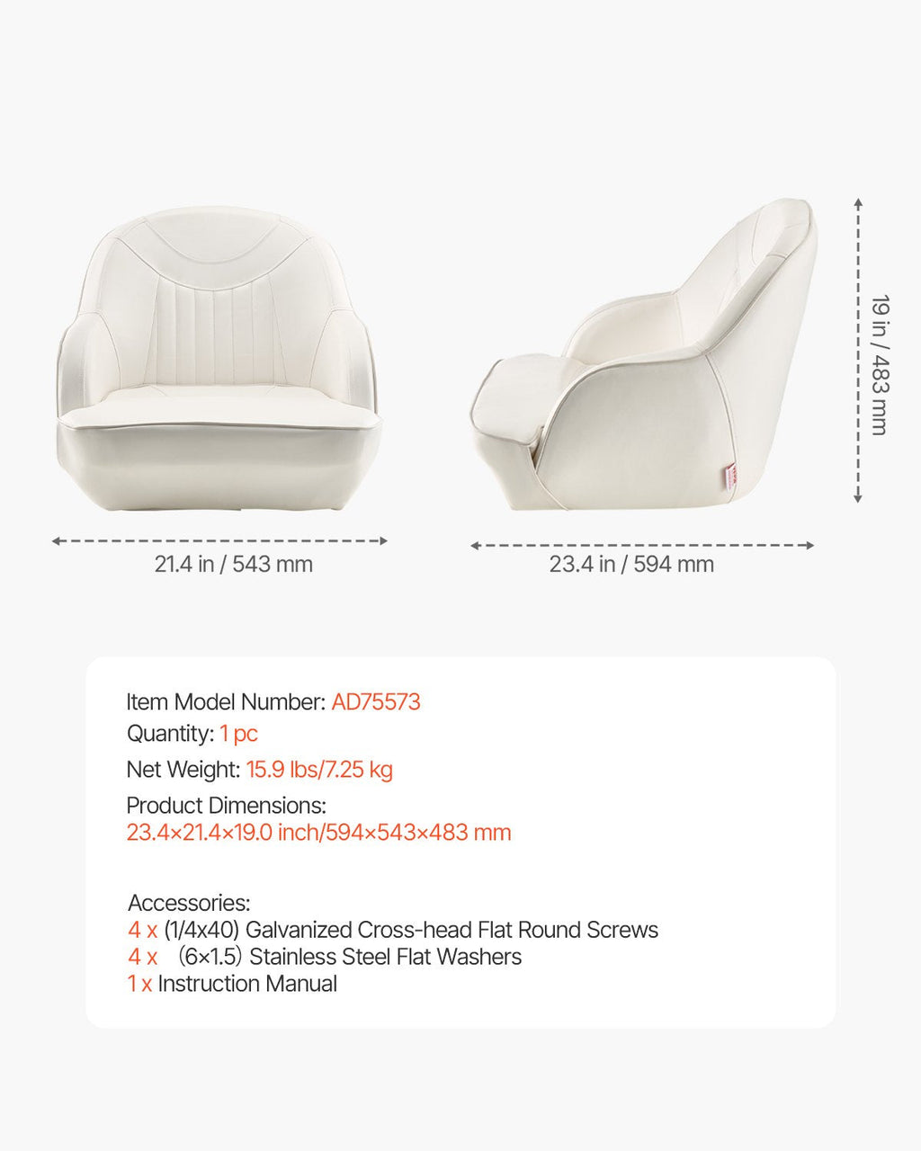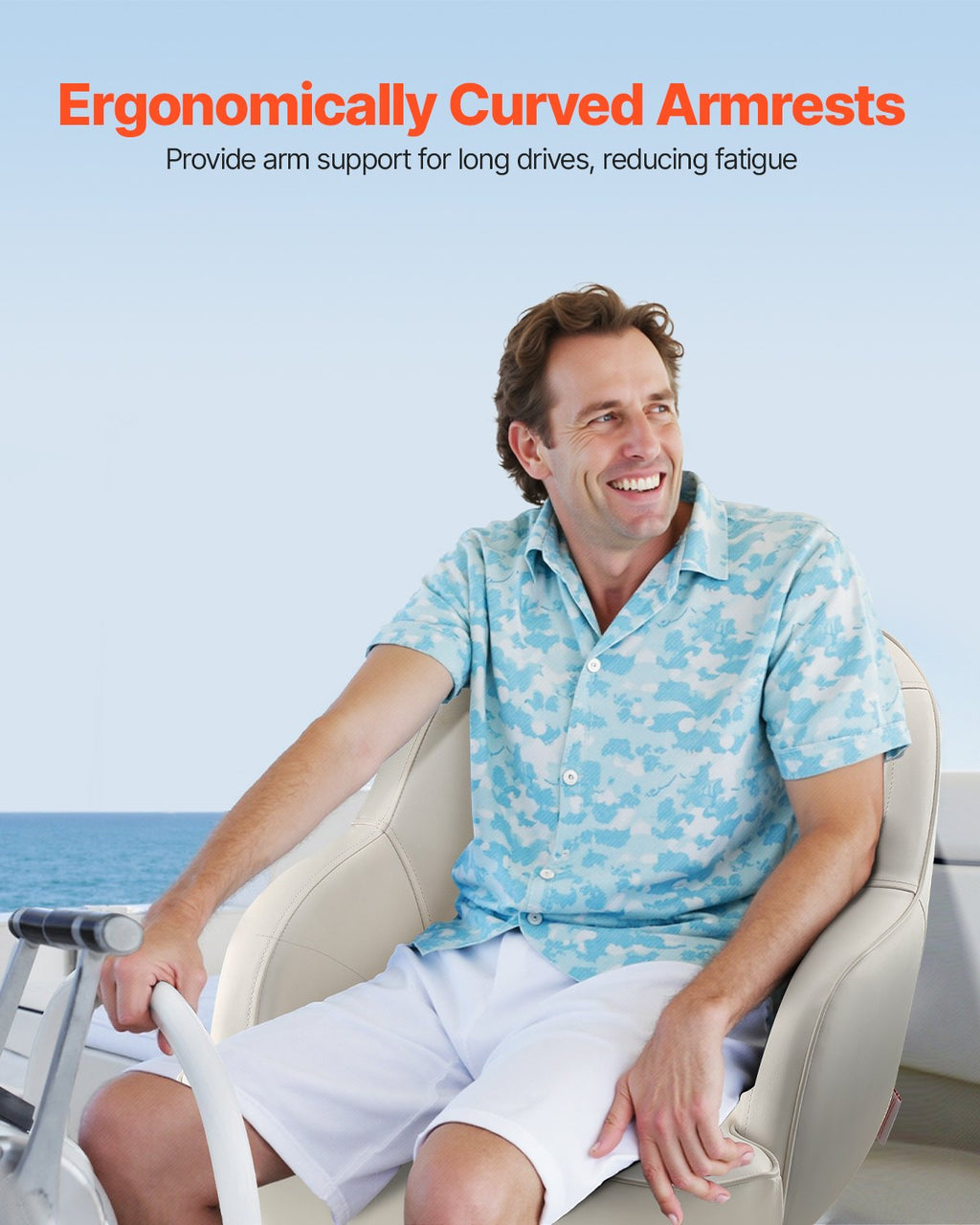 Upgrade your boat with the VEVOR Low Backrest Captain Bucket Seat. Designed for durability and comfort, this marine-grade seat features a contoured shape, weather-resistant PVC leather, and a strong internal structure built to handle the harshest marine conditions. Whether you're cruising, fishing, or navigating, this seat offers reliable support and a premium look.