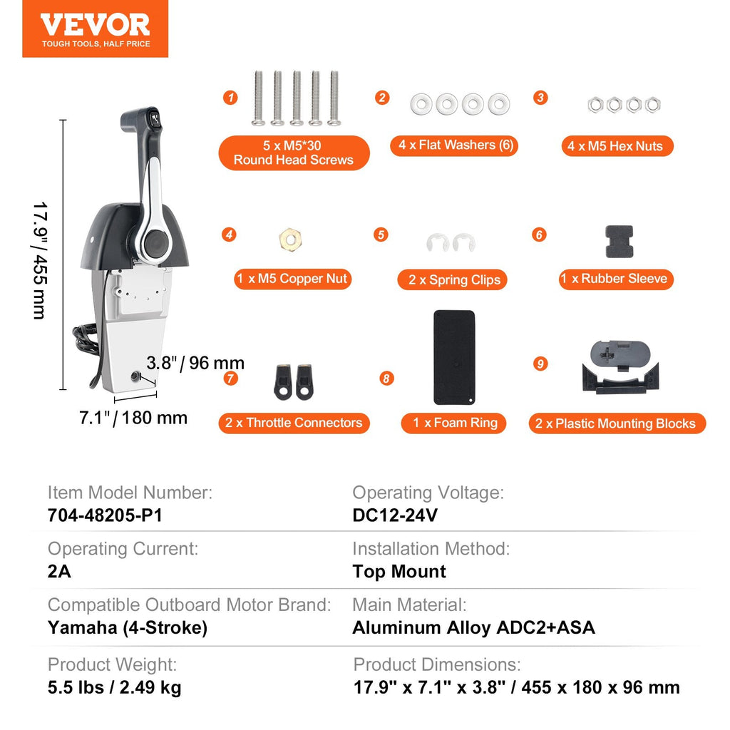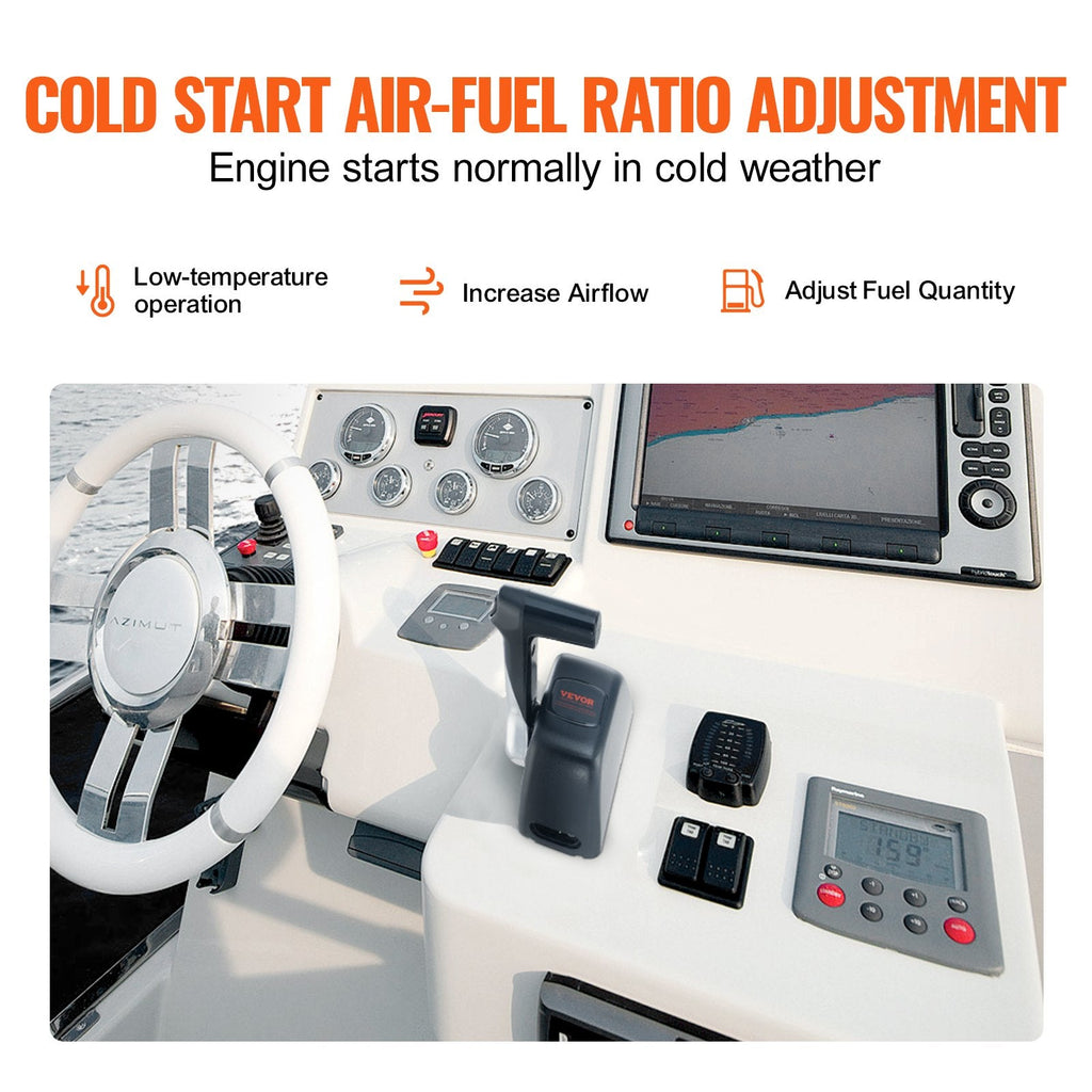 The VEVOR Boat Throttle Control is a premium, top-mounted remote control box designed specifically for Yamaha 4-Stroke outboard motors. This control box offers smooth operation, with an integrated power trim switch for precise control of your motor’s performance. The air-fuel ratio adjustment ensures your motor runs at its optimal performance, while the 4.6 ft harness with a 5-pin connector makes installation easy and flexible. Built from durable aluminum alloy ADC2 and ASA materials, this throttle control box is engineered to withstand the harsh marine environment, providing you with years of reliable service.