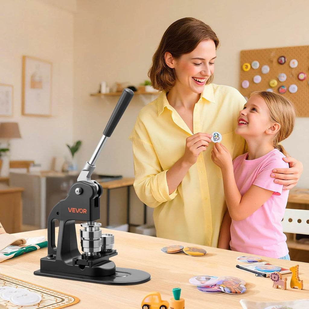 Create personalized badges, pins, and keychains effortlessly with the VEVOR Button Maker Machine. Designed for DIY enthusiasts, this 1.25-inch pin maker comes with a complete set of accessories to get you started immediately. Its ergonomic handle and durable construction make badge-making easy and enjoyable for all skill levels.