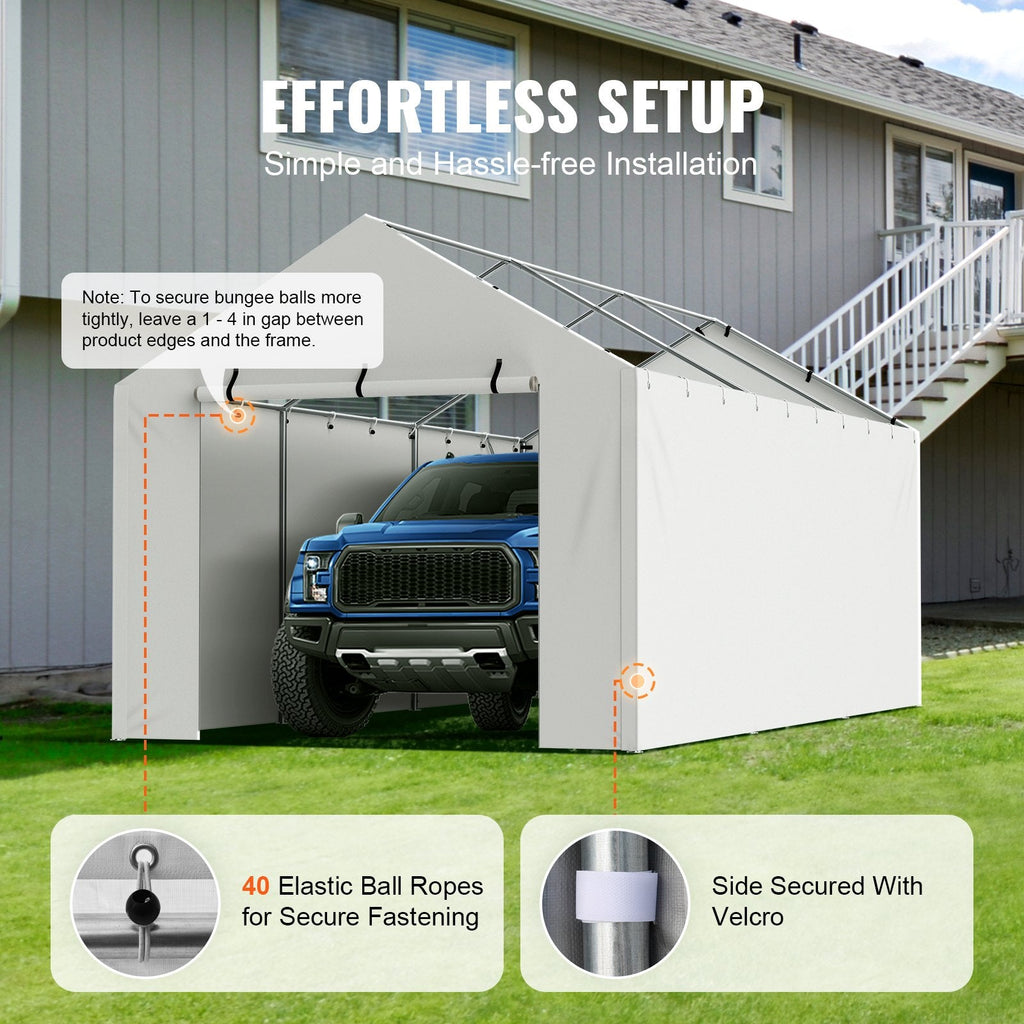 Upgrade your outdoor shelter with the VEVOR 10 x 20 ft Carport Replacement Canopy Cover Side Wall. Designed for durability and ease, this heavy-duty PE tarp is waterproof and UV-protected, providing long-lasting protection for your vehicles or equipment. With user-friendly ball bungees for quick setup and included leg wraps, it's the ideal solution for restoring or enhancing your existing carport (top and frame not included).