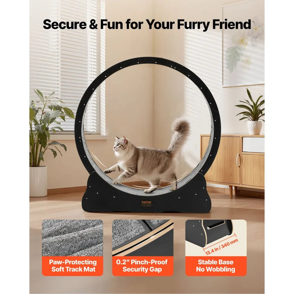Keep your cat active, healthy, and entertained with the VEVOR Cat Exercise Wheel, a 48-inch wooden running wheel designed for indoor cats up to 28 lbs. Featuring a carpeted runway, quiet operation, and a secure locking mechanism, this treadmill-style wheel encourages daily exercise, reduces stress, and promotes overall feline fitness. Its durable wooden frame and complete accessory kit make it ideal for medium to large cats in any home.