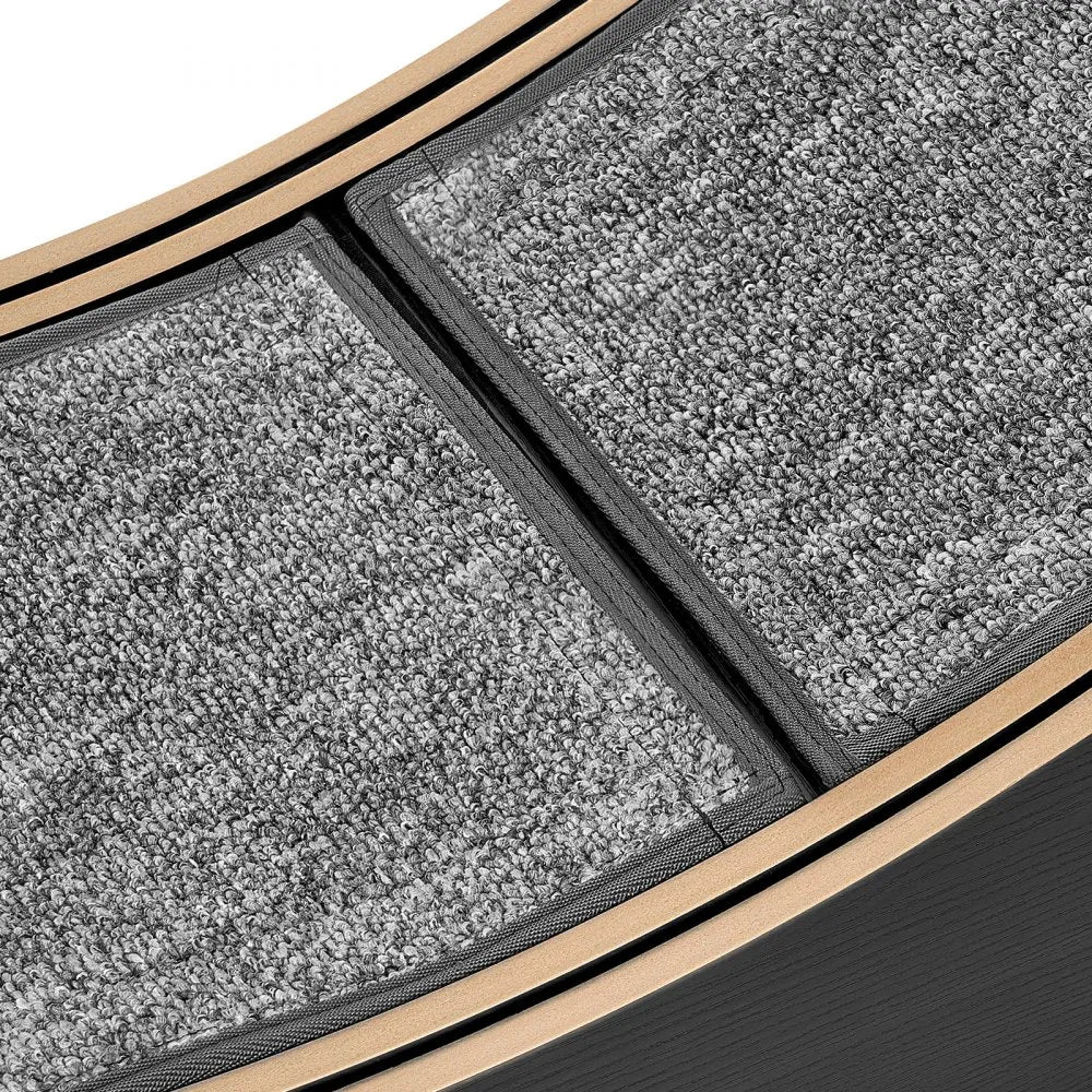 Wide, stable base prevents tipping during vigorous activity. 0.2 in security gap prevents paw injuries, and the soft carpeted track reduces friction to protect your cat’s paws. -