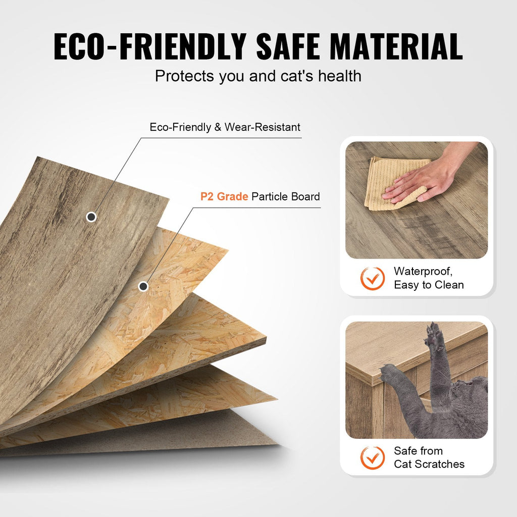 The VEVOR Cat Litter Box Enclosure in Greige offers a perfect combination of style, functionality, and durability. This wooden enclosure features two rooms to hide your cat’s litter box and offers additional storage space. The sleek greige finish adds a modern touch to any home, while the sturdy 12mm particle board construction ensures long-lasting use. The enclosure is ideal for keeping your pet’s litter box discreet and your space organized.