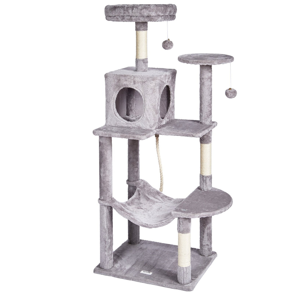 Give your cat the ultimate playground with the VEVOR 56.2" Cat Tree, designed to offer multiple layers of comfort and entertainment. With a spacious cat condo, cozy hammock, and durable sisal scratching post, this multi-platform cat tower provides everything your cat needs for climbing, scratching, and resting. Its sturdy construction supports up to 88lbs, making it ideal for one or more cats. The light grey color complements any interior, while the compact design ensures it fits in most spaces. Easy to assemble and maintain, this cat tree is the perfect haven for your feline friend.