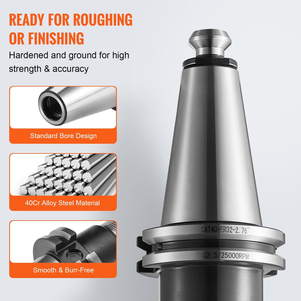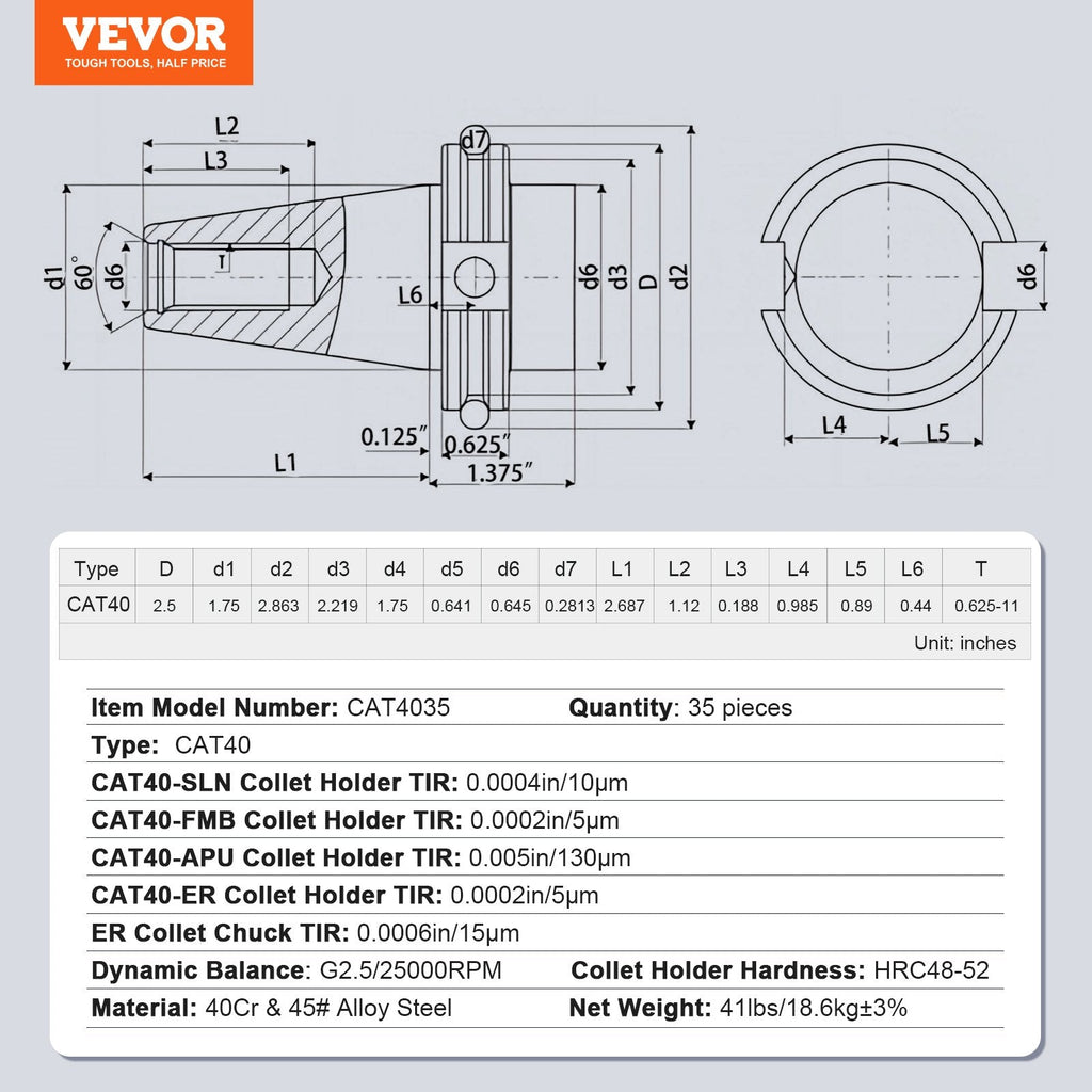 Upgrade your machining precision with the VEVOR CAT40 Collet Holder Set, a comprehensive 35-piece kit engineered for milling machines, drill presses, and boring machines. Featuring ER16 and ER32 collet holders, SLN, FMB, and APU tool holders, 10 pull studs, 3 wrenches, and spring steel collets, this set delivers tight tolerances and high-speed stability. Designed for accuracy, durability, and ease of use, each tool holder is immersed in anti-rust oil and stored in a labeled box for safe and organized access.