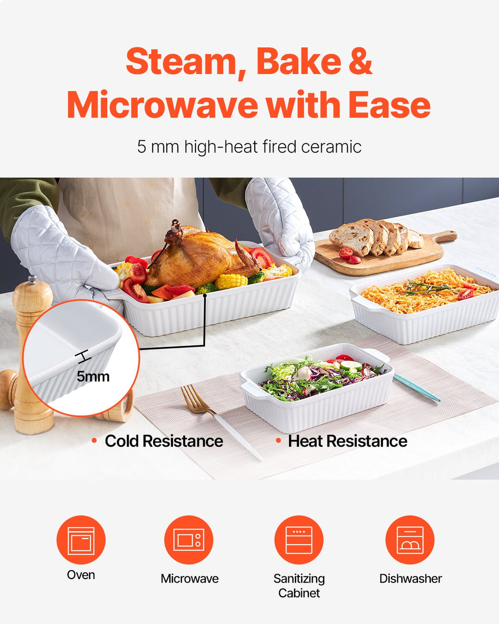 Superior Ceramic Quality: Made from durable ceramic, these baking dishes provide even heat distribution for perfectly cooked meals.