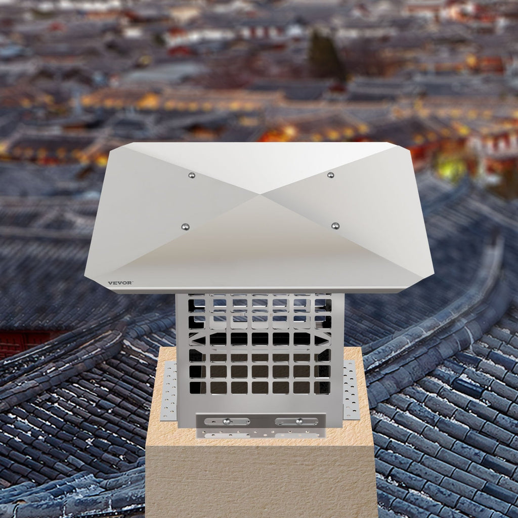 Enhance the safety and performance of your chimney with the VEVOR Chimney Cap. Designed to fit 8" x 8" clay flue tiles, this high-quality cap is built from durable 304 stainless steel for superior rust resistance and longevity. The adjustable metal spark arrestor prevents dangerous sparks and embers from escaping, while the fine mesh screen keeps out debris, birds, and small animals. Easy to install with the included bolts and screws, this chimney cap offers a secure and effective barrier for improved ventilation and peace of mind.