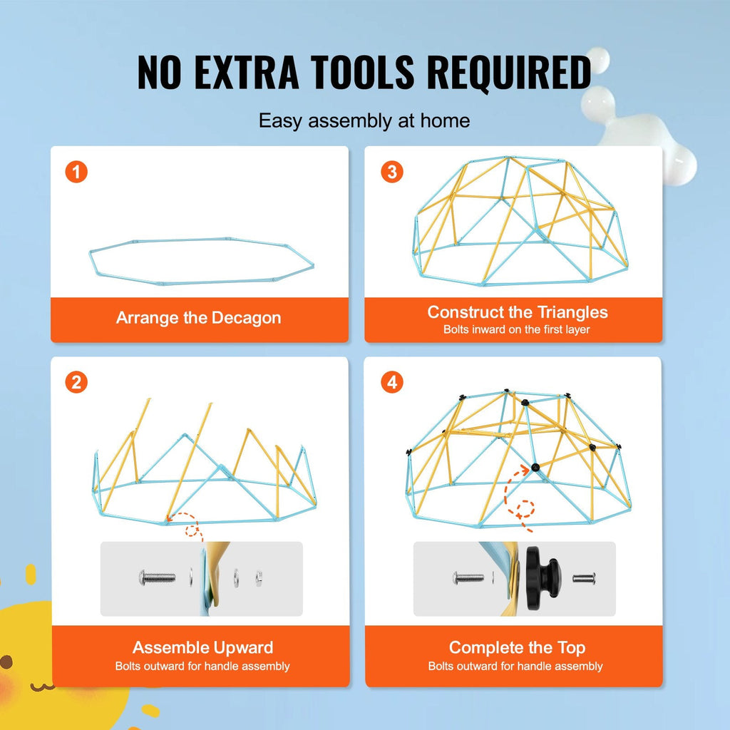 The VEVOR 8FT Geometric Climbing Dome with slide is the perfect outdoor and indoor play equipment for kids ages 3 to 9 years old. Designed to provide fun and active play, this climbing dome features a sturdy structure with a colorful powder coating and a safe, easy-to-use PP slide. The dome supports up to 600 lbs, accommodating 2-3 kids at a time for climbing, sliding, and imaginative play. Its geometric design ensures both fun and challenge, while the galvanized steel construction promises long-lasting durability. Perfect for building strength, coordination, and social skills, it’s an ideal gift for your little adventurers.