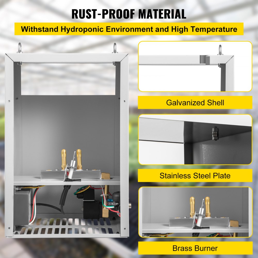 High CO2 Output: Produces 5588 BTU/hr of CO2 to promote rapid plant growth and yield improvement