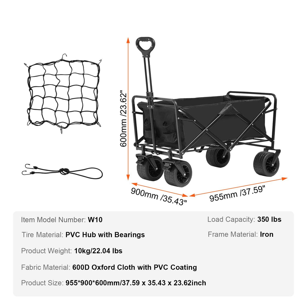 The VEVOR Collapsible Folding Wagon is the ultimate all-terrain cart for outdoor enthusiasts. Whether you're camping, shopping, or working in the garden, this heavy-duty wagon features a spacious 3 cu.ft storage capacity and an impressive 350 lbs weight capacity. Equipped with durable all-terrain swivel wheels, an adjustable handle, and a quick folding design, it offers effortless mobility and easy storage for all your outdoor gear.