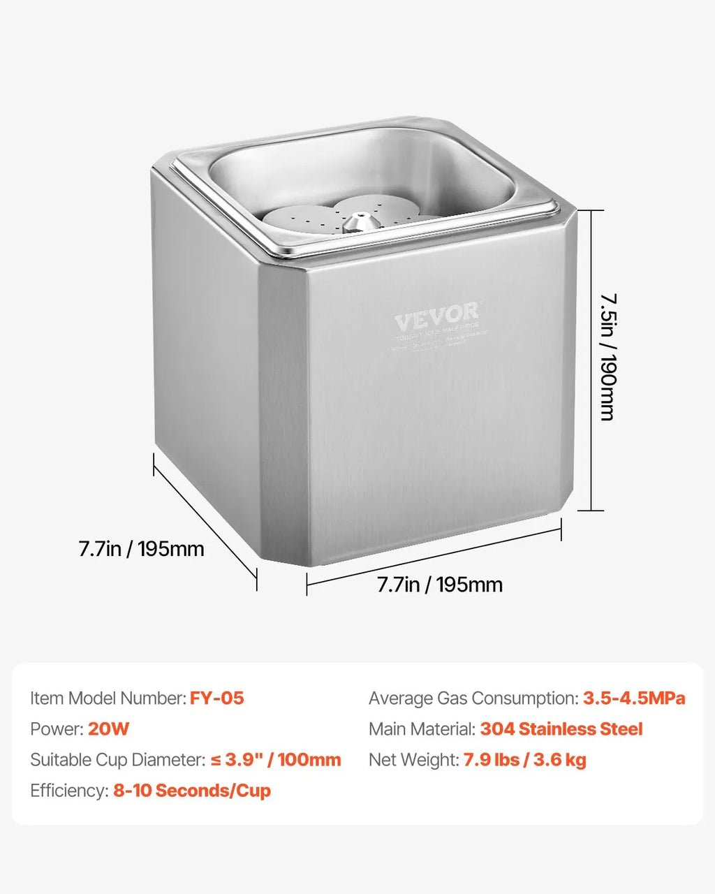 Product Size: 7.7 x 7.7 x 7.5 in / 195 x 195 x 190 mm
