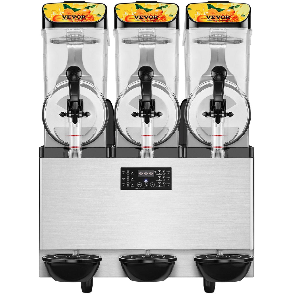 Transform your party, cafe, or restaurant into the ultimate frozen drink destination with the VEVOR Commercial Slushy Machine. This triple-bowl slushie maker features 3 x 12L (3.2 Gal) capacity, allowing for a continuous output of up to 150 cups (250 ml per cup), perfect for high-demand environments. Whether you're serving margaritas, smoothies, or slushies, the efficient compressor and stainless steel construction guarantee durability and reliability.