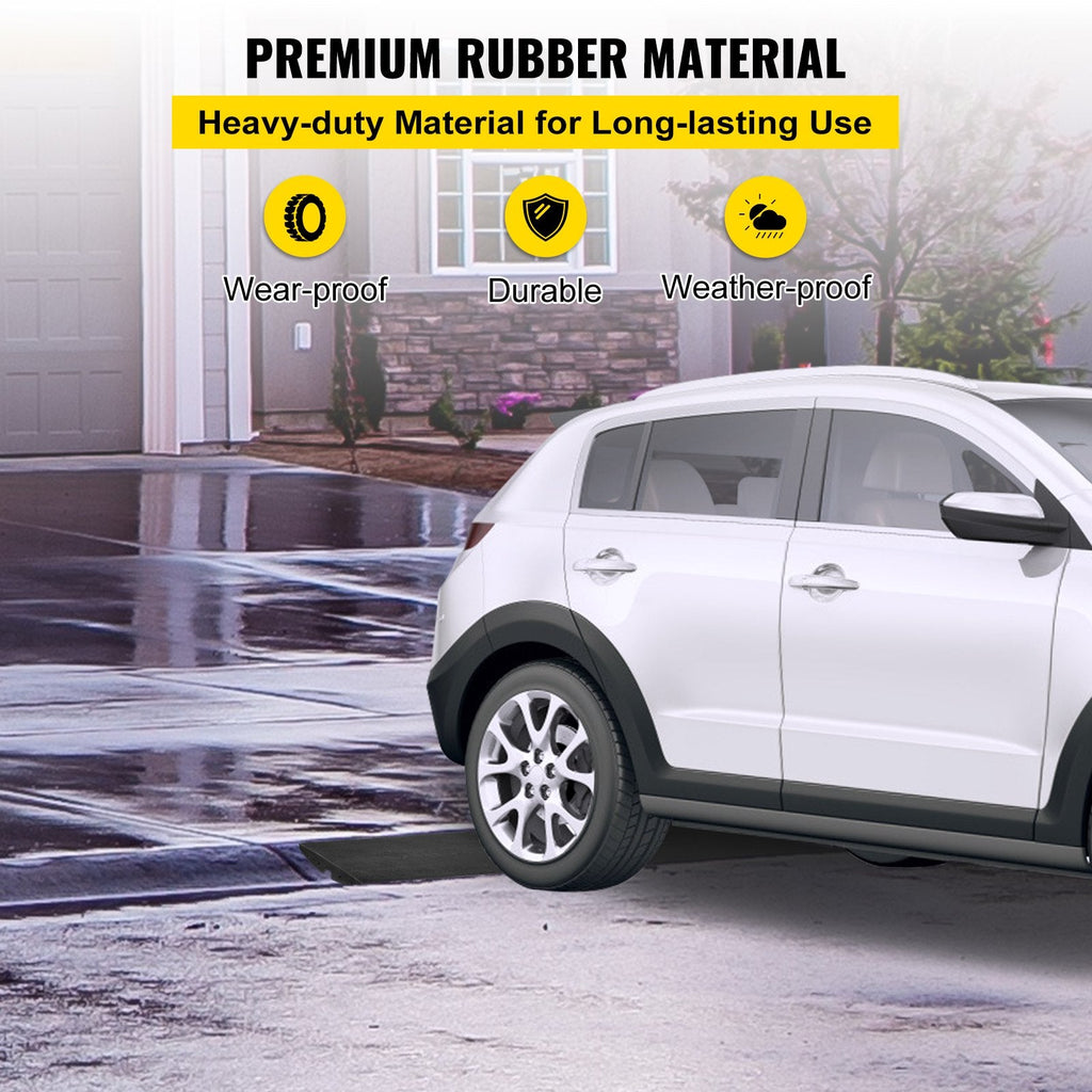 The VEVOR Curb Ramp is a heavy-duty, single-piece ramp engineered for superior durability and performance. Constructed from premium rubber, it supports up to 32,000 lbs, making it an ideal solution for loading docks, garage entries, driveways, and sidewalks. With a 2.6-inch height, it provides a seamless transition over curbs and thresholds, reducing the risk of vehicle damage. Its modular, expandable design allows users to connect multiple ramps for extended coverage, accommodating a variety of residential, commercial, and industrial applications.