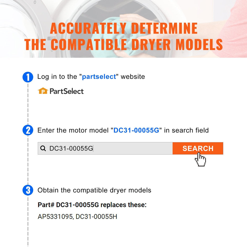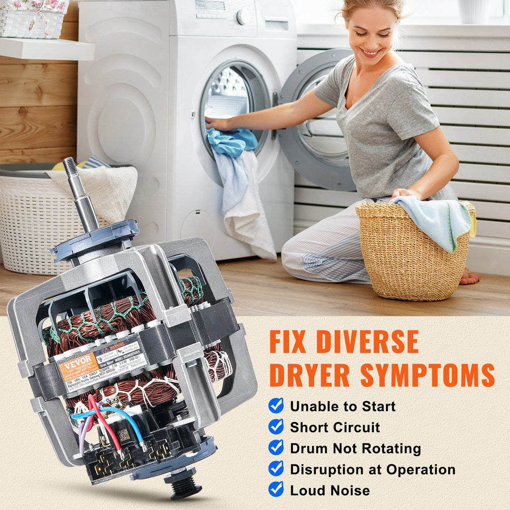 The VEVOR DC31-00055G Dryer Drive Motor is designed to provide efficient and quiet operation for your dryer. With a 1/3HP motor and 1630RPM speed, this durable and high-performance motor ensures smooth functioning and quick drying. Compatible with popular models from Samsung and Kenmore, it is a reliable replacement for part numbers 40299032011, 40299032012, 59289622, DV330AGB, DV331AEW, DV350AER, and DV350AGR. This motor delivers high efficiency with minimal noise, making it an ideal choice for your appliance repairs.