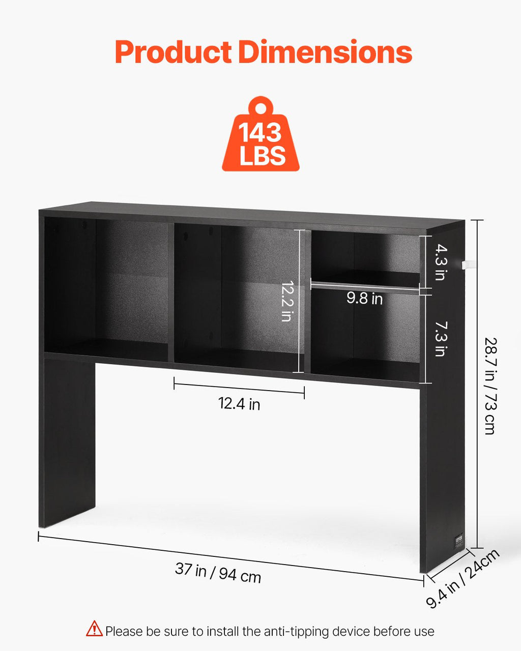 The VEVOR Desktop Bookshelf is a stylish and practical 1-tier organizer that helps keep your desk tidy and well-organized. Its durable build and sleek black design make it a versatile addition to both office and home spaces. With an easy setup process and sturdy construction, this bookshelf offers ample storage for books, files, or decorative items. The anti-slip feet pads and anti-tip accessories ensure safety and stability.