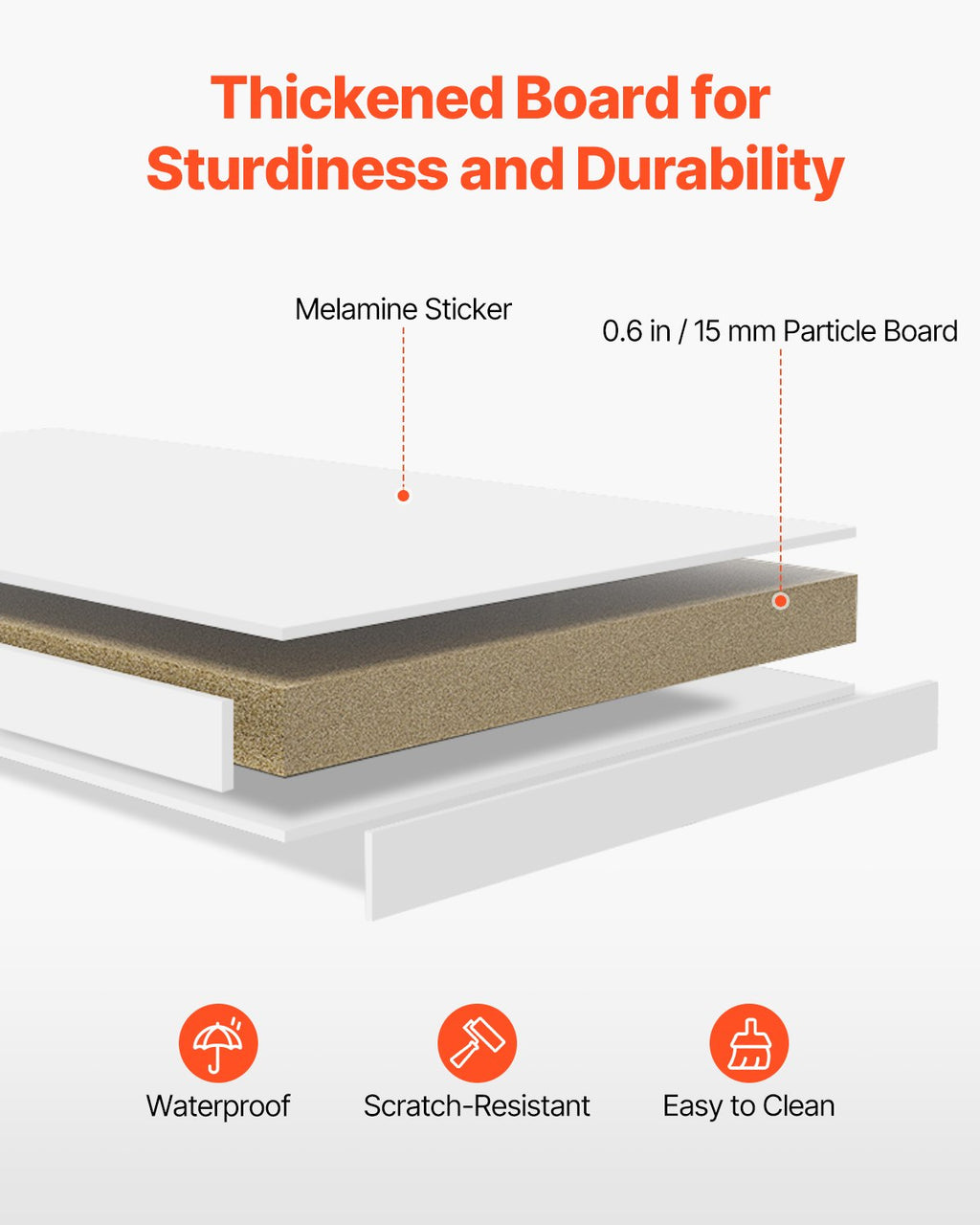 Durable Construction: Made from particle board with melamine paper coating