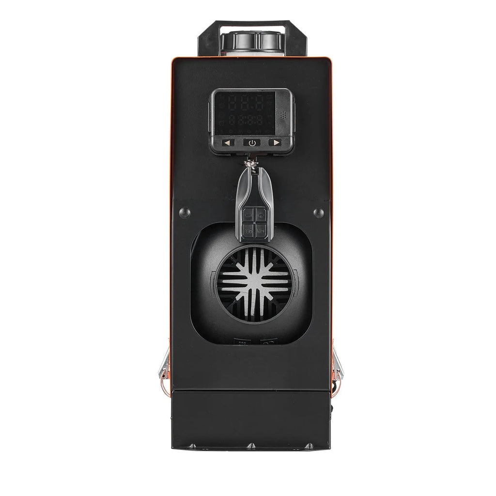 The VEVOR 8 kW Diesel Air Heater is a portable parking heater designed for RVs, trucks, campers, vans, boats, and trailers. Operating on DC 12–24V, it efficiently heats areas of 161–215 FT² with a ceramic igniter for quick starts even in cold weather. Enhanced safety features include a heat-insulated exhaust pipe shield, leak-proof fuel cap, and fuel gauge for safe and reliable operation. Its precision low-noise fuel pump and 5L (1.3 Gal) fuel tank provide efficient all-night heating with ≥90% combustion efficiency. Dual control options include a 98 ft remote control and color LCD screen, allowing temperature adjustment from 32–104℉ (0–40℃). Compact and easy to install, this diesel heater works effectively at altitudes below 9843 ft, delivering continuous warmth in cold or high-altitude environments.
